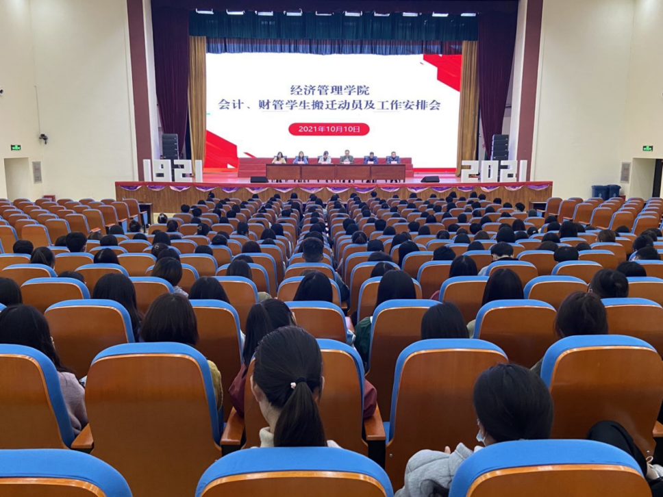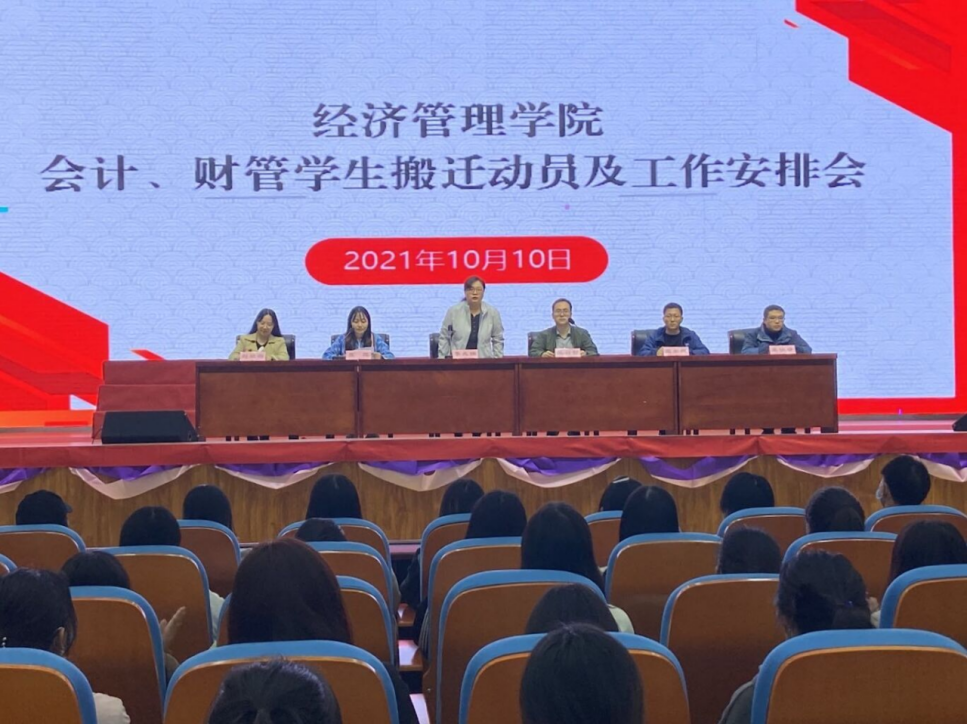 为确保会计、财管专业学生搬迁工作安全有序进行,保障新学期教育教学工作的有序开展,10月10日下午,米乐mile官方网站召开会计、财管专业学生搬迁动员暨工作安排大会。大会由团总支书记聂蕴老师主持。学院党总支副书记李兆楠老师和副院长张召哲老师及相关辅导员出席会议,290余名学生参加此次会议。