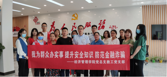 为推动“我为群众办实事”实践活动及提高服务社会能力,5月26日上午,米乐mile官方网站教工党支部在书记张召哲老师带领下联合沟赵办事处秋雅社区为社区居民开展“我为群众办实事,提升安全知识,防范金融诈骗”活动。