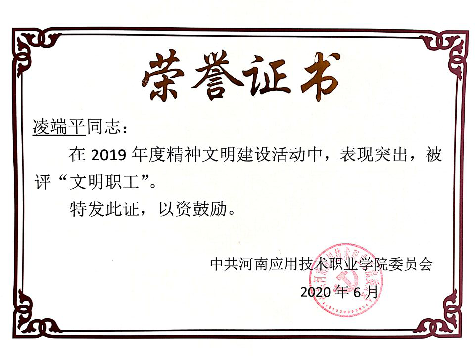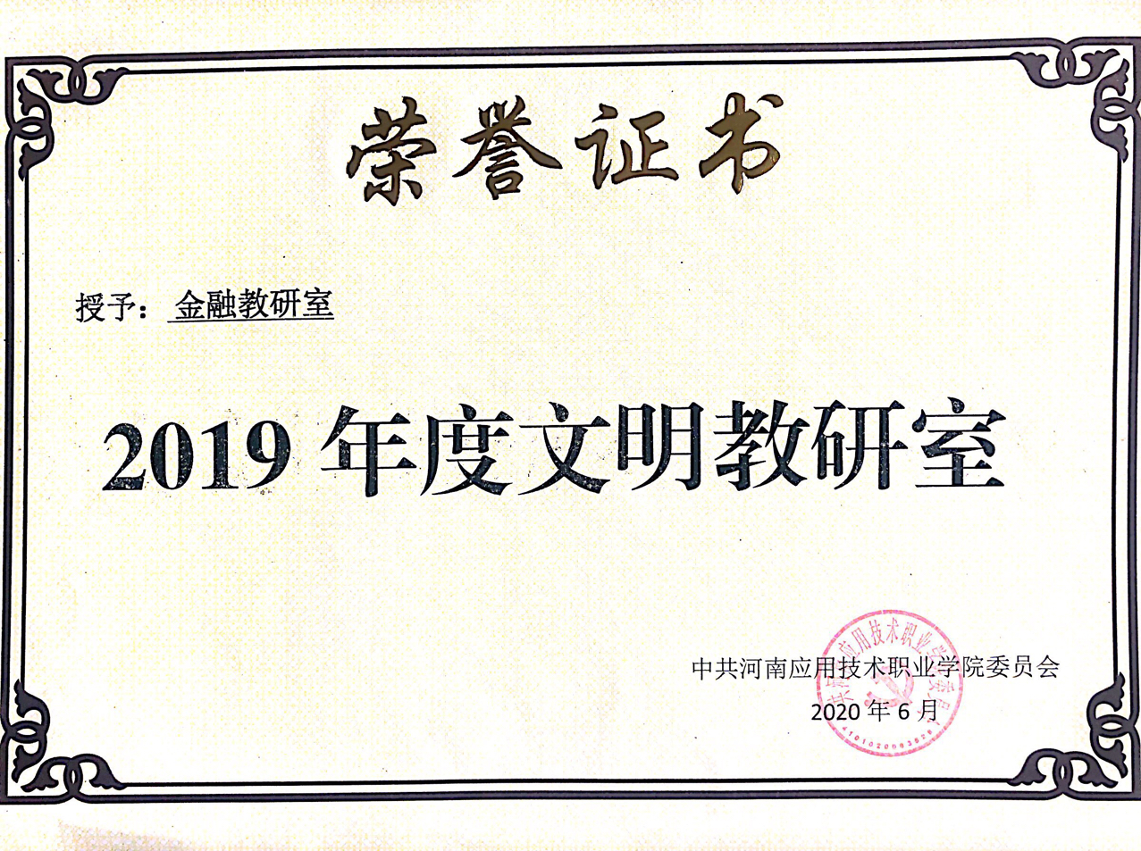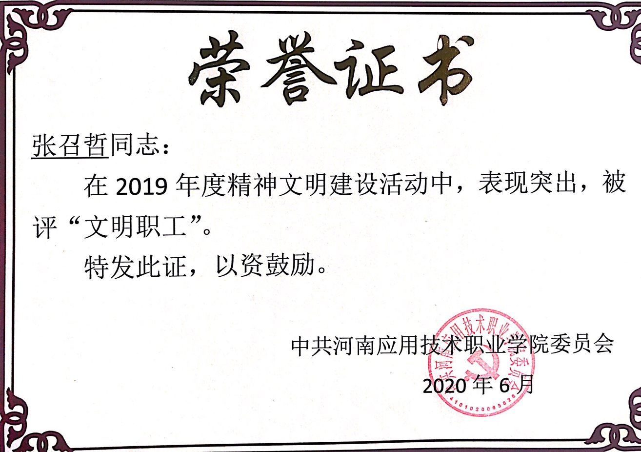 根据《米乐mile官方网站关于开展2019 年度“文明处室(学院)”、“文明教研室”、“文明职工”、“优秀志愿者”、“文明食堂”评选活动的通知 》应职院文明办[2020]2号文件精神,我院金融教研室被评为2019年度“文明教研室”荣誉称号。张召哲、凌端平同志荣获“文明职工”荣誉称号;柴芳芳、聂蕴同志荣获“优秀志愿者”荣誉称号。