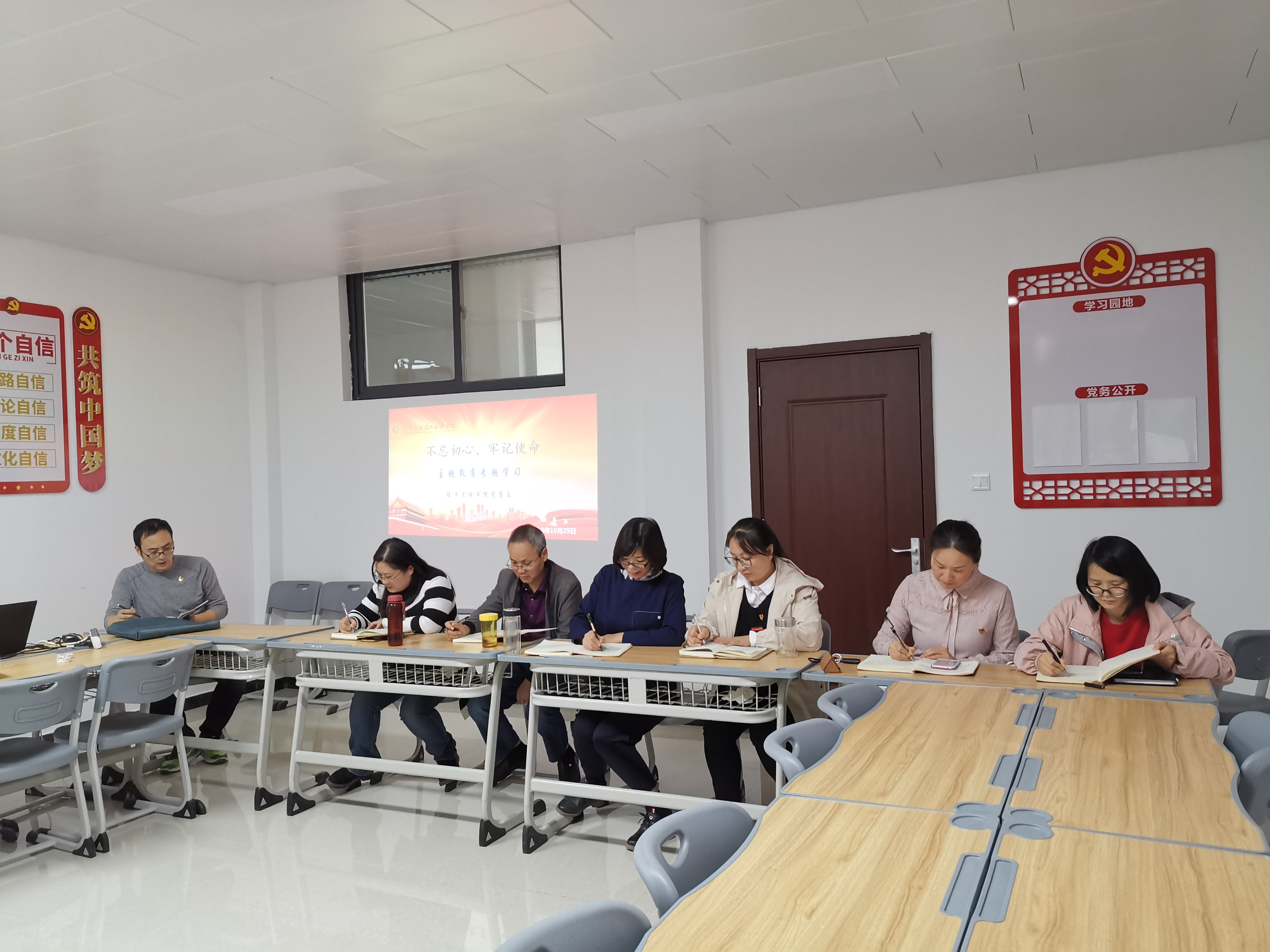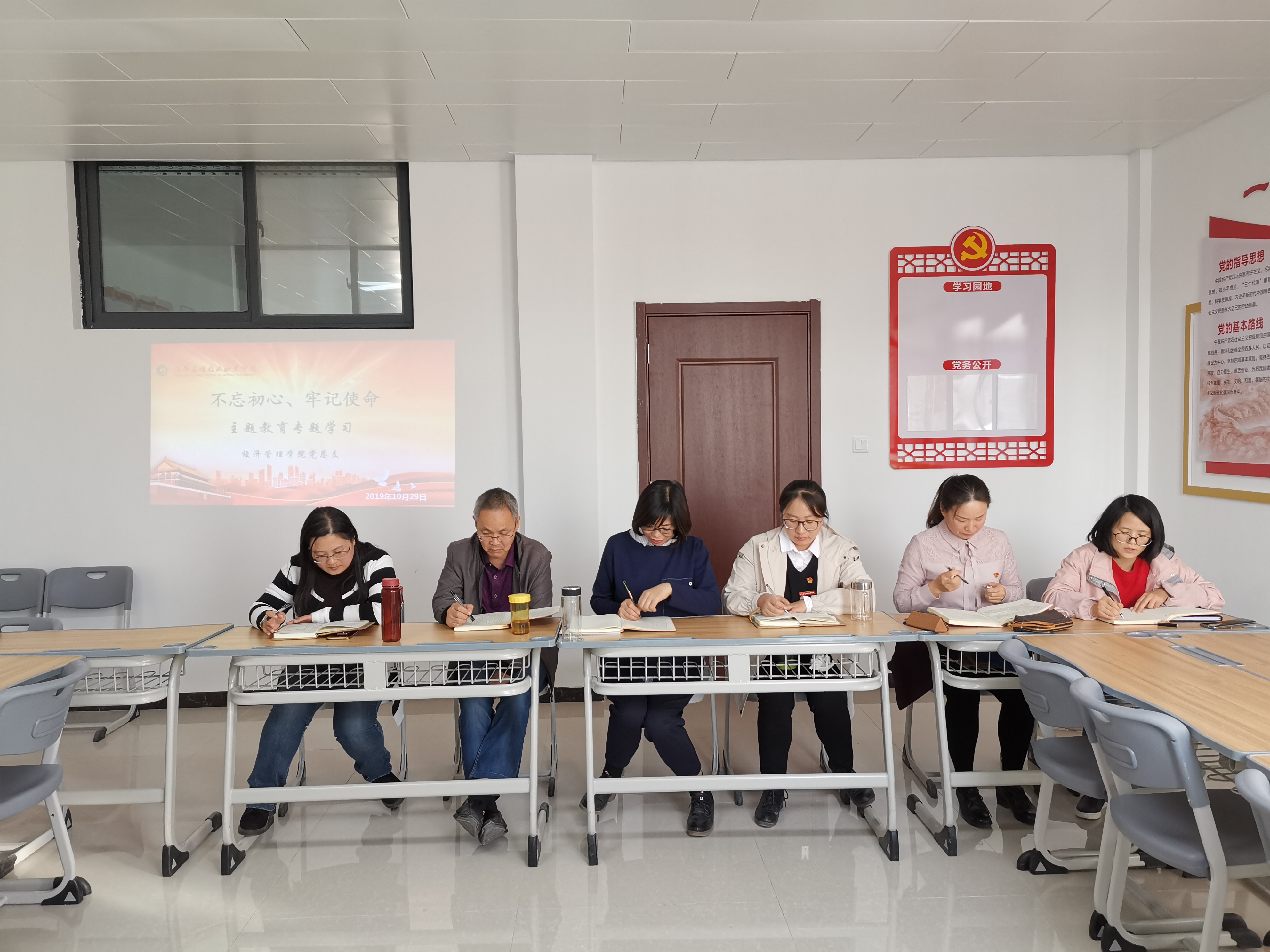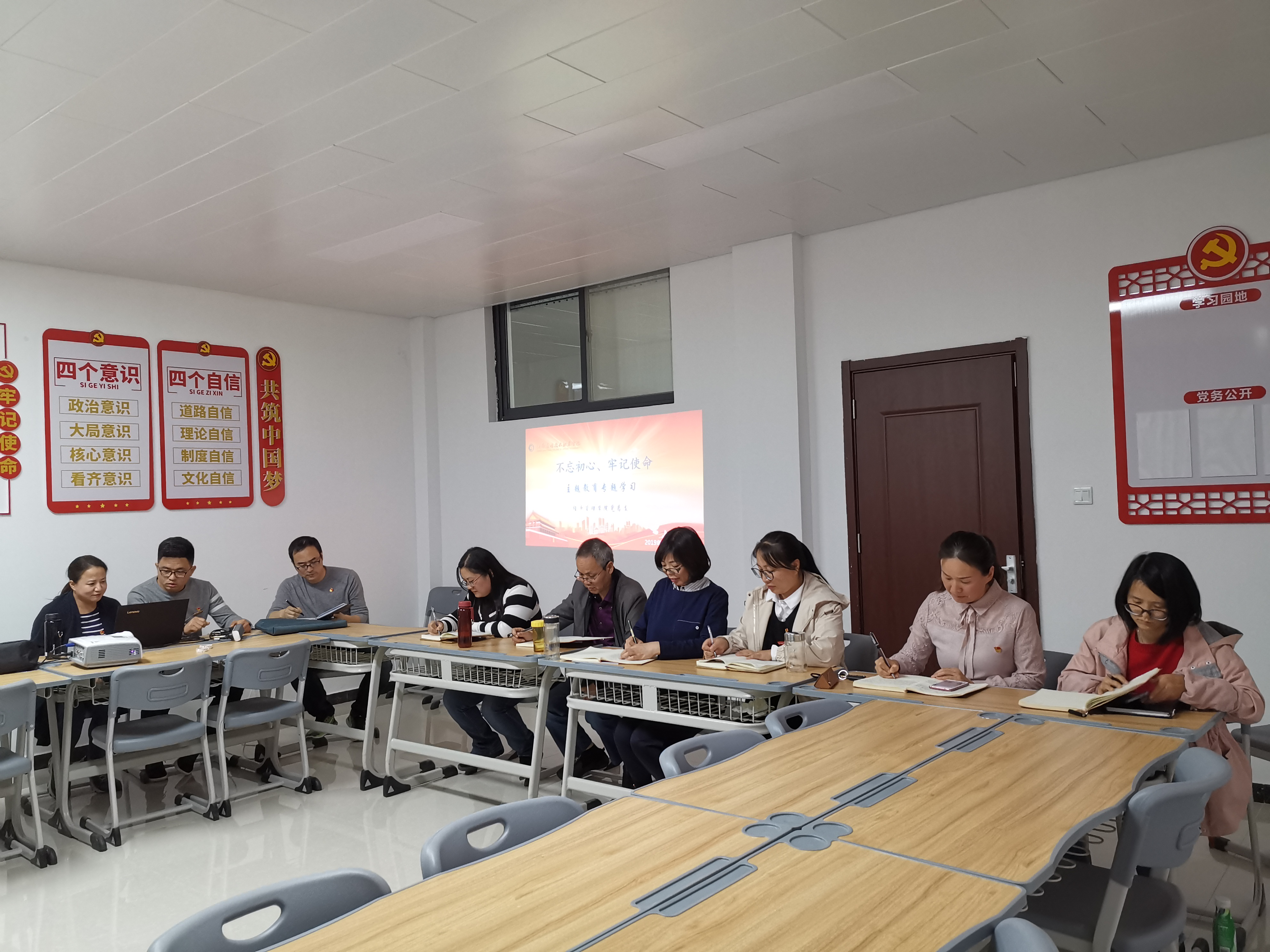 2019年10月29日下午,米乐mile官方网站党总支在办公楼505进行“不忘初心、牢记使命”主题教育第六专题“强化党的政治纪律和政治规矩”和第七专题“加强党性修养”的集中学习研讨,学习由教工支部书记张召哲老师主持,全体党员教师参与本次学习研讨。
