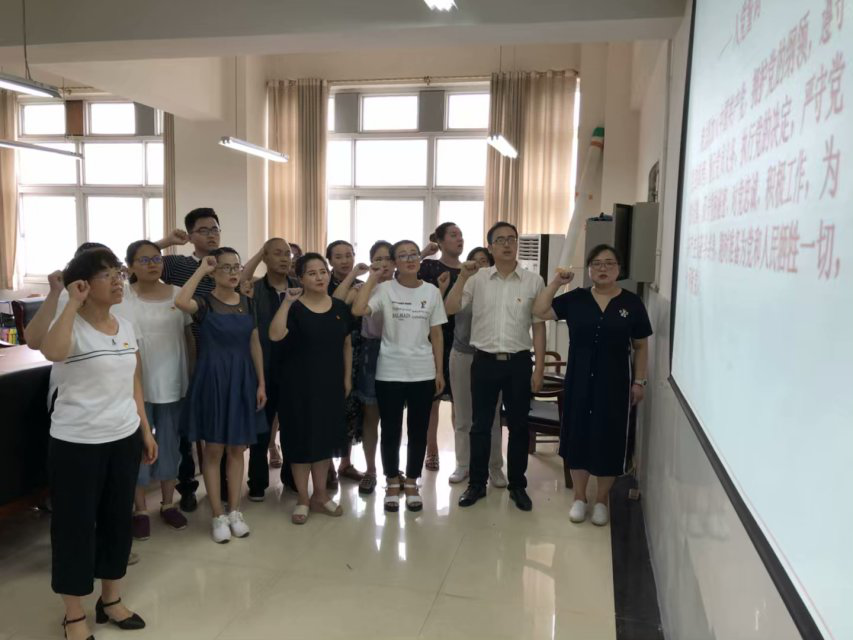 随后,在袁清香书记的率领下,全体参会人员整齐队列高举右拳,重温入党誓词。一句句锵锵有力的入党誓词响彻整个教室,一声声入党誓词是全体党员掷地有声的庄严承诺,直上云霄。通过重温入党誓词,认真回顾申请入党时的思想激情和奋斗追求,回顾入党宣誓时的庄严承诺和坚定决心,回顾自己的成长历程和入党以来的追求与表现,对照入党誓词寻找自身差距和不足,时刻牢记入党誓言,自觉遵守党的章程,终身践行入党誓词。