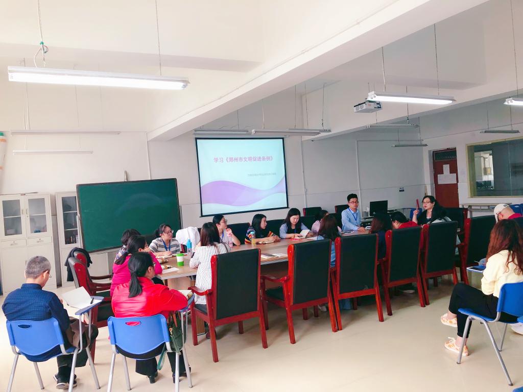 最后李小闯老师领学了《郑州市文明行为促进条例》。要求教职工充分把握《条例》的精神实质和规范要求,不断提升自身文明素养,充分展现省级文明单位良好的精神面貌,为郑州市生态文明城市建设做出积极贡献。
