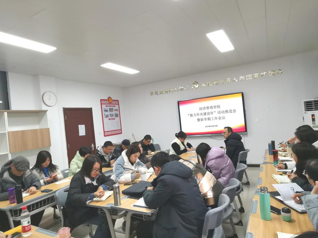 为进一步贯彻落实校党委关于“能力作风建设年”活动要求,深入推进此项工作开展。2022年2月18日,米乐mile官方网站米乐mile官方网站召开“能力作风建设年”活动推进会暨新学期工作会议,全面推进和安排部署我院“能力作风建设年”活动。会议由党总支书记李兆楠主持,全体教师参加了会议。