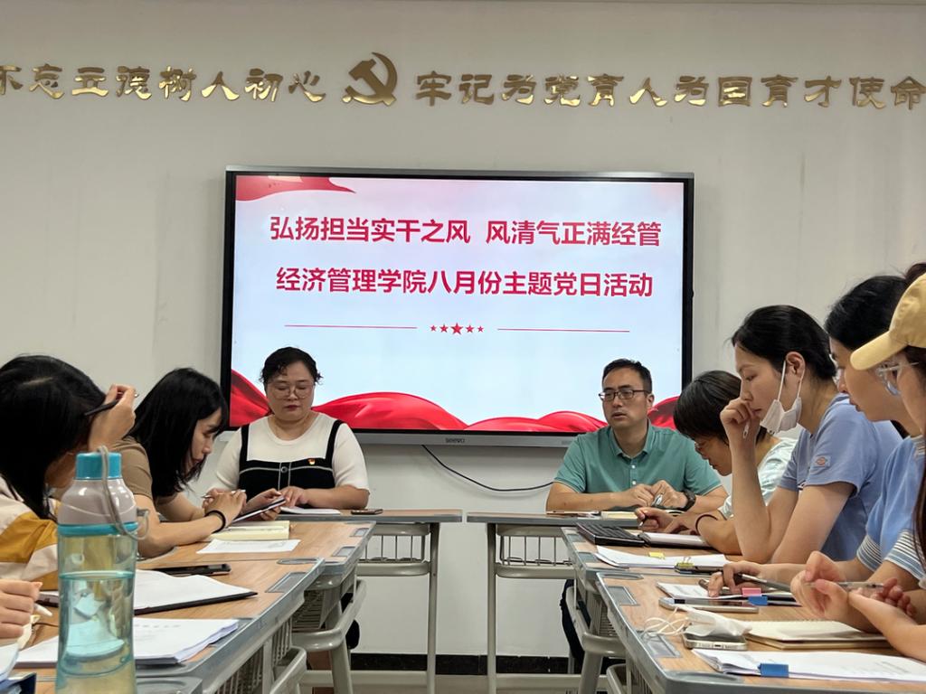 为以更加饱满精神状态投入新学期工作,2022年8月30日上午,米乐mile官方网站党总支在A505召开“弘扬担当实干之风 风清气正满经管”主题党日活动,全体党员参与活动。