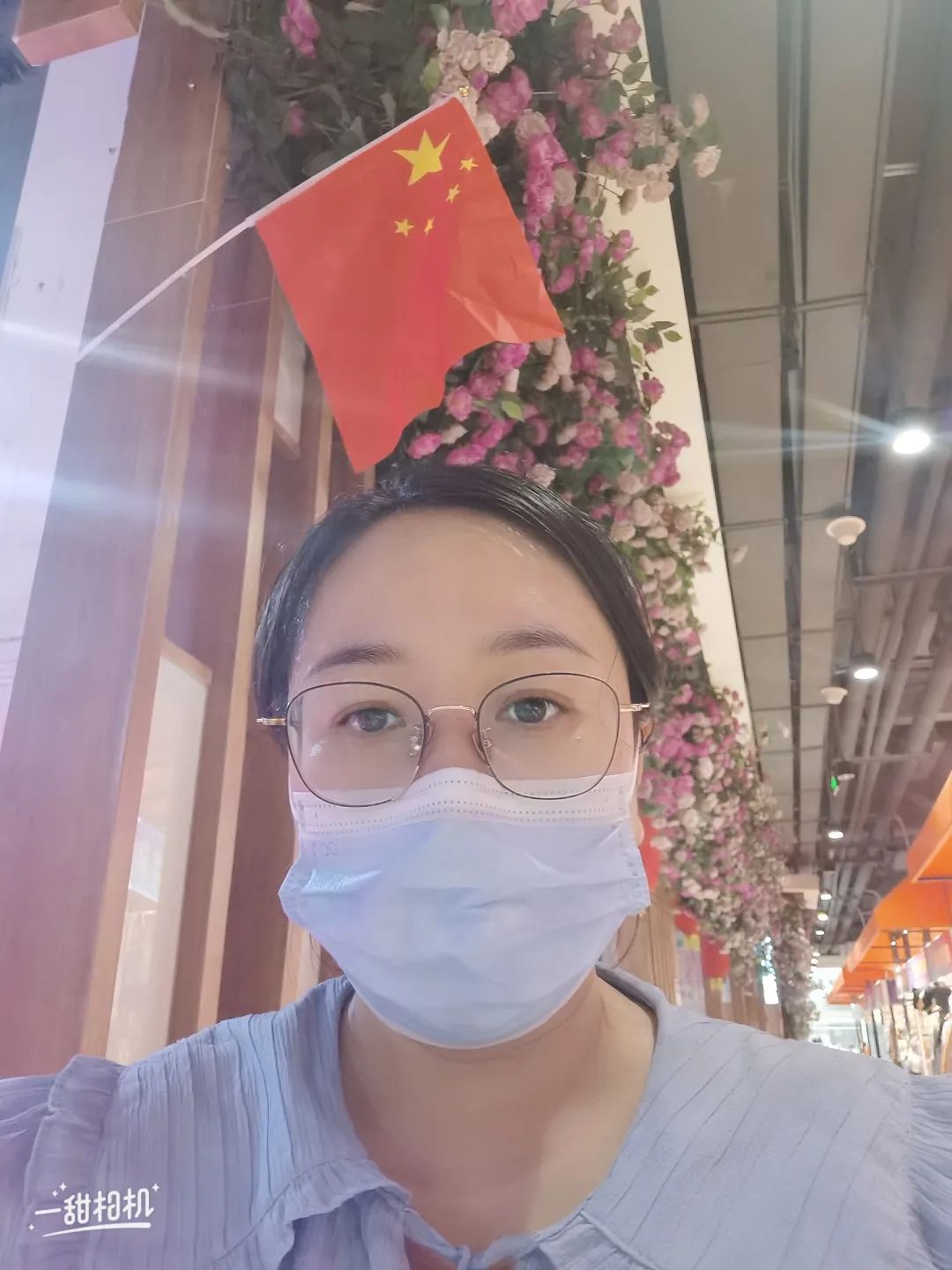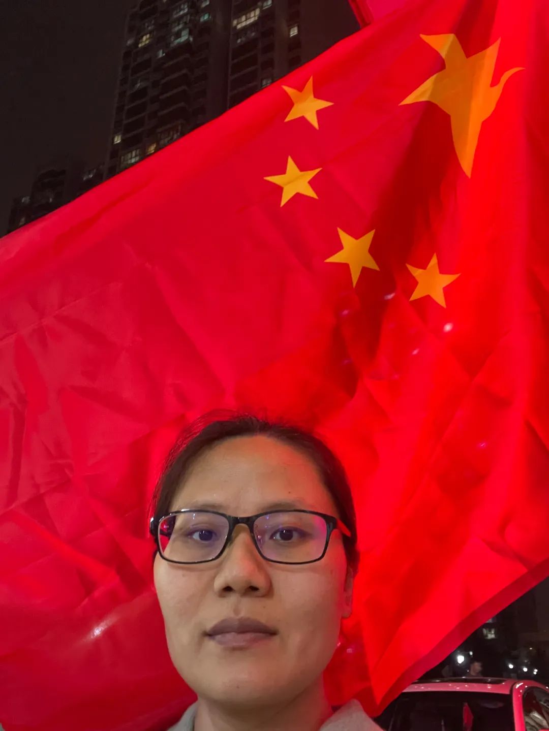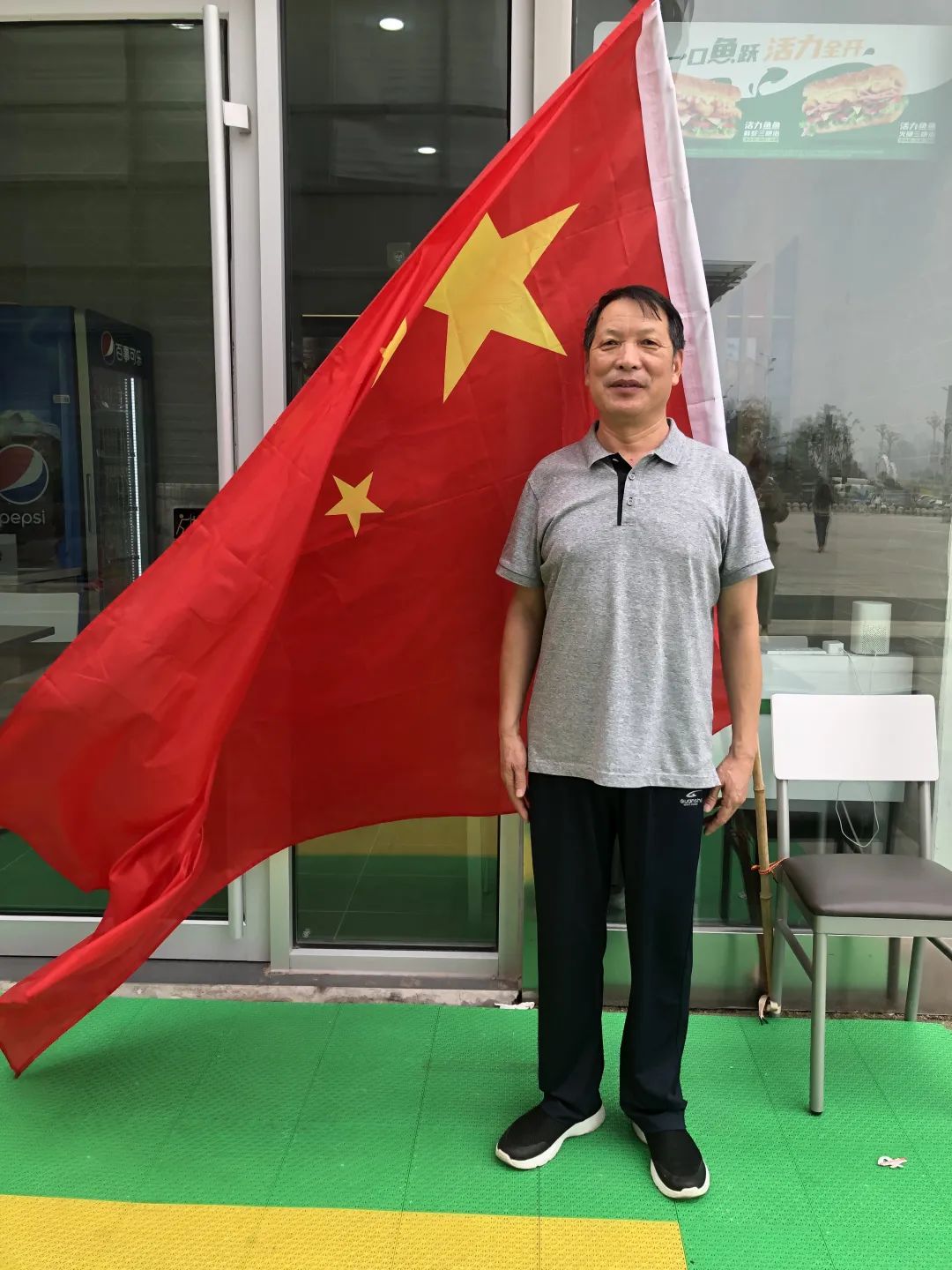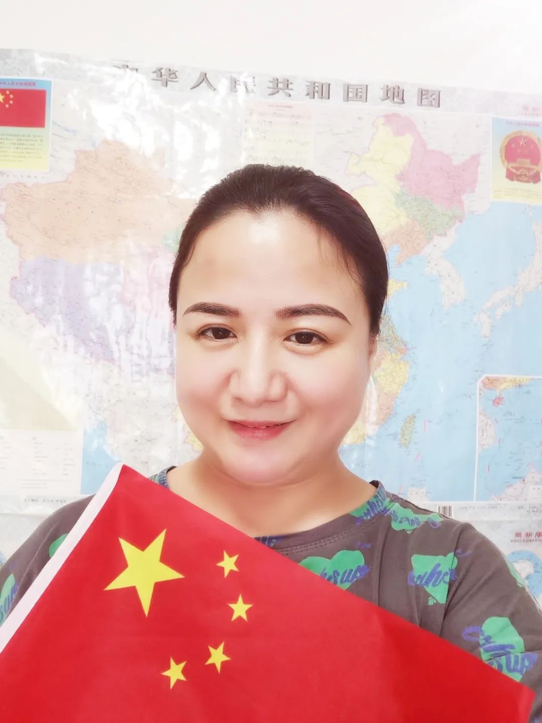 与国旗合影