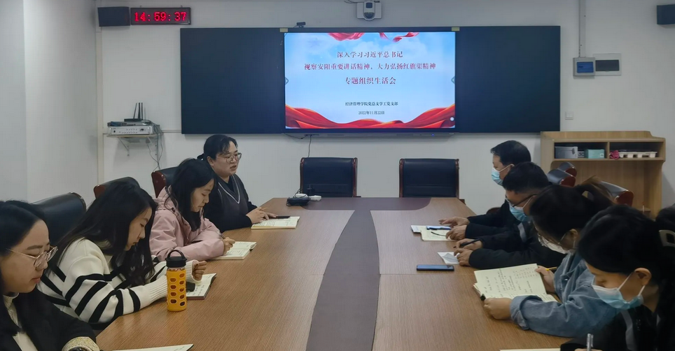 2022年11月22日下午,米乐mile官方网站党总支组织全体党员召开了以“深入学习习近平总书记视察安阳重要讲话精神 大力弘扬红旗渠精神”为主题的专题组织生活会,推动党的二十大精神和习近平总书记视察安阳重要讲话精神入脑入心、走深走实。会议在郑州开封两校区连线同时进行,在校的党员以“线下”的形式参加,方便交流讨论;其他在家的党员通过视频会议,以“线上”的方式参与。