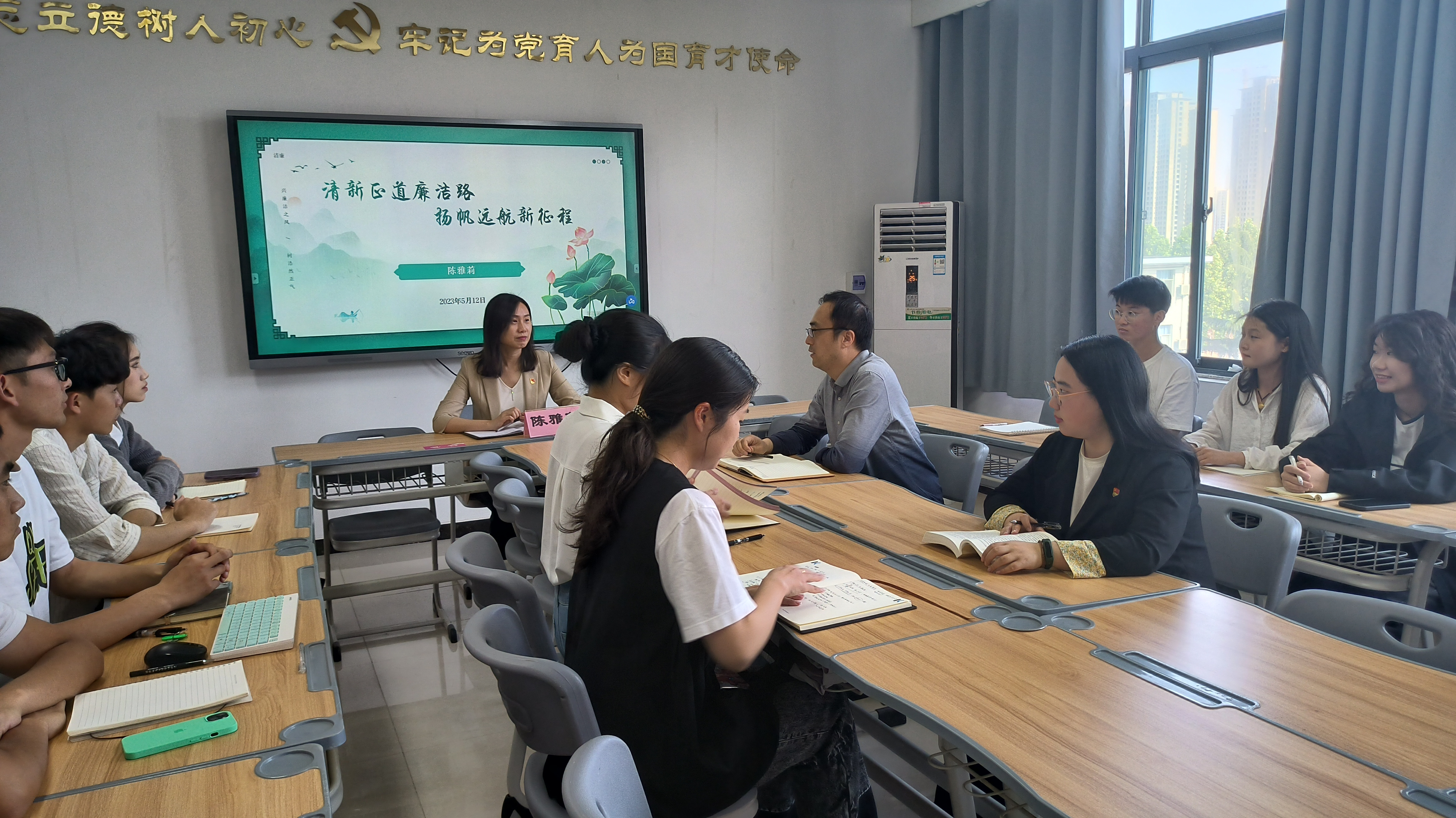 为营造风清气正的校园廉洁文化氛围,助推推进清廉学校的“五个一工程”建设,2023年5月12日下午,学校纪委书记为米乐mile官方网站党总支讲授《清新正道廉洁路 扬帆远航新征程》主题党课,党员教师代表、2021级入党积极分子参加学习。陈雅莉重点做以下三方面的讲授: