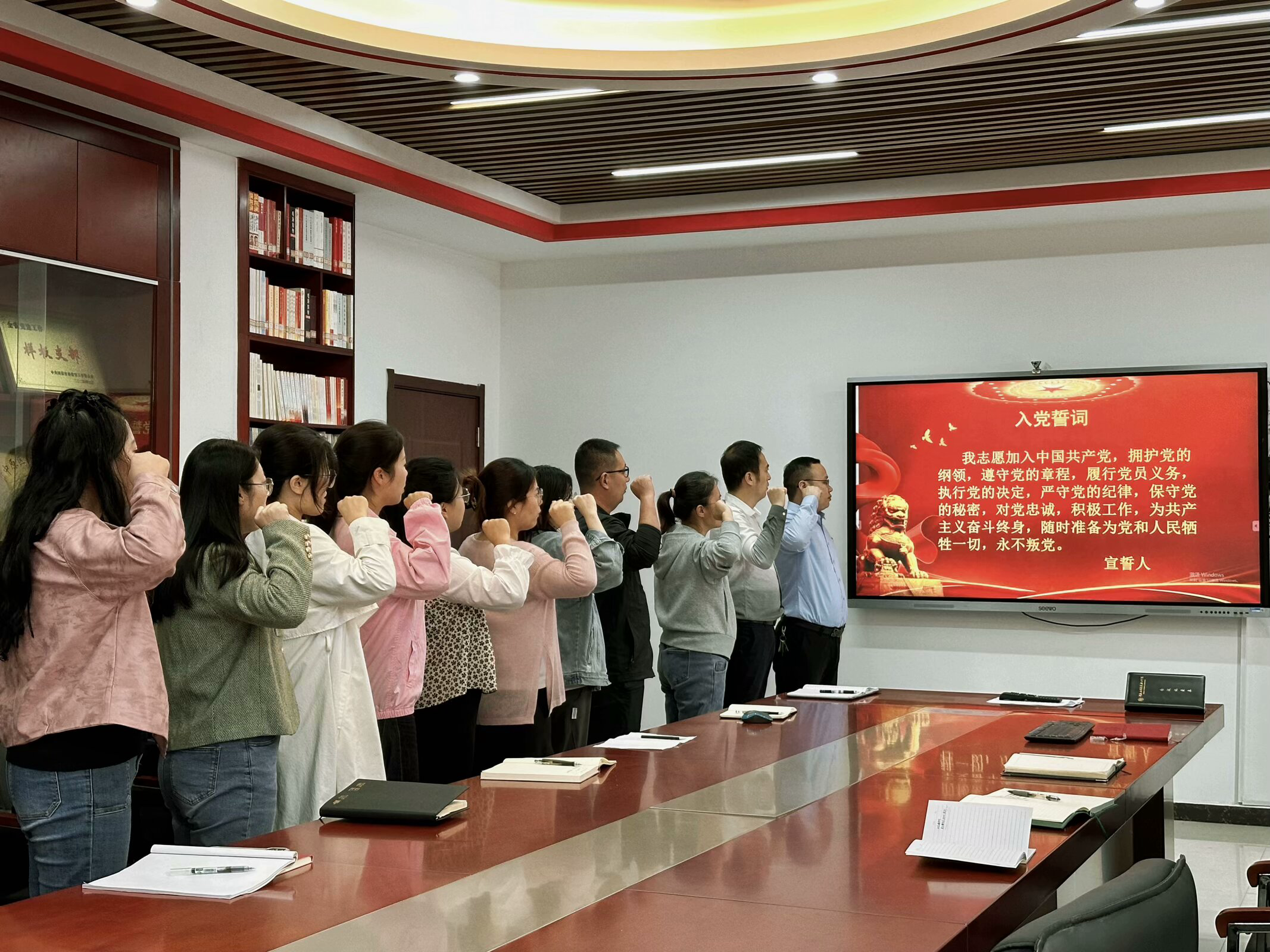 活动伊始,全体党员肃立,齐声高唱国歌。随后,党总支书记张忠勇带领大家一起回顾中华人民共和国建国75年的光辉历程,号召全体党员同志要始终牢记初心使命、坚定理想信念、勇于担当作为,以实际行动迎接国庆佳节,奋进新征程。最后,全体党员面对党旗庄严宣誓,重温入党誓词。这既是对党员身份的再次确认,也是对初心使命的再次坚守。大家纷纷表示,将以更加饱满热情与昂扬斗志,投身教书育人工作,为实现中华民族伟大复兴中国梦奉献青春力量。