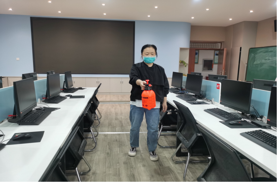 本次演练首先集中学习了疫情防控知识和实训室防控管理流程,然后按照实训室疫情防控预案进行现场模拟演练。整个演练过程有条不紊,各个环节紧密衔接,异常情况处置高效得当。实验管理人员分工明确、反应迅速、协调有序,覆盖了实训室入口体温检测及体温异常学生处置、教学楼内通道管理、实验教学流程管理、实验过程中学生健康检测异常等多个场景。在经管学院各位老师的认真配合下,圆满完成了预定方案的应急演练流程,提高了疫情防控水平和应对突发疫情能力。