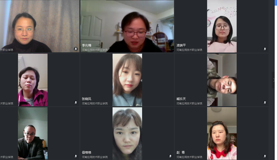 各位参会教师均表示将严格遵守学院各项教学要求,创新教学形式,提高教学质量,认真准备,精心组织,全力做好网络教学工作,坚决打赢疫情教学攻坚战。