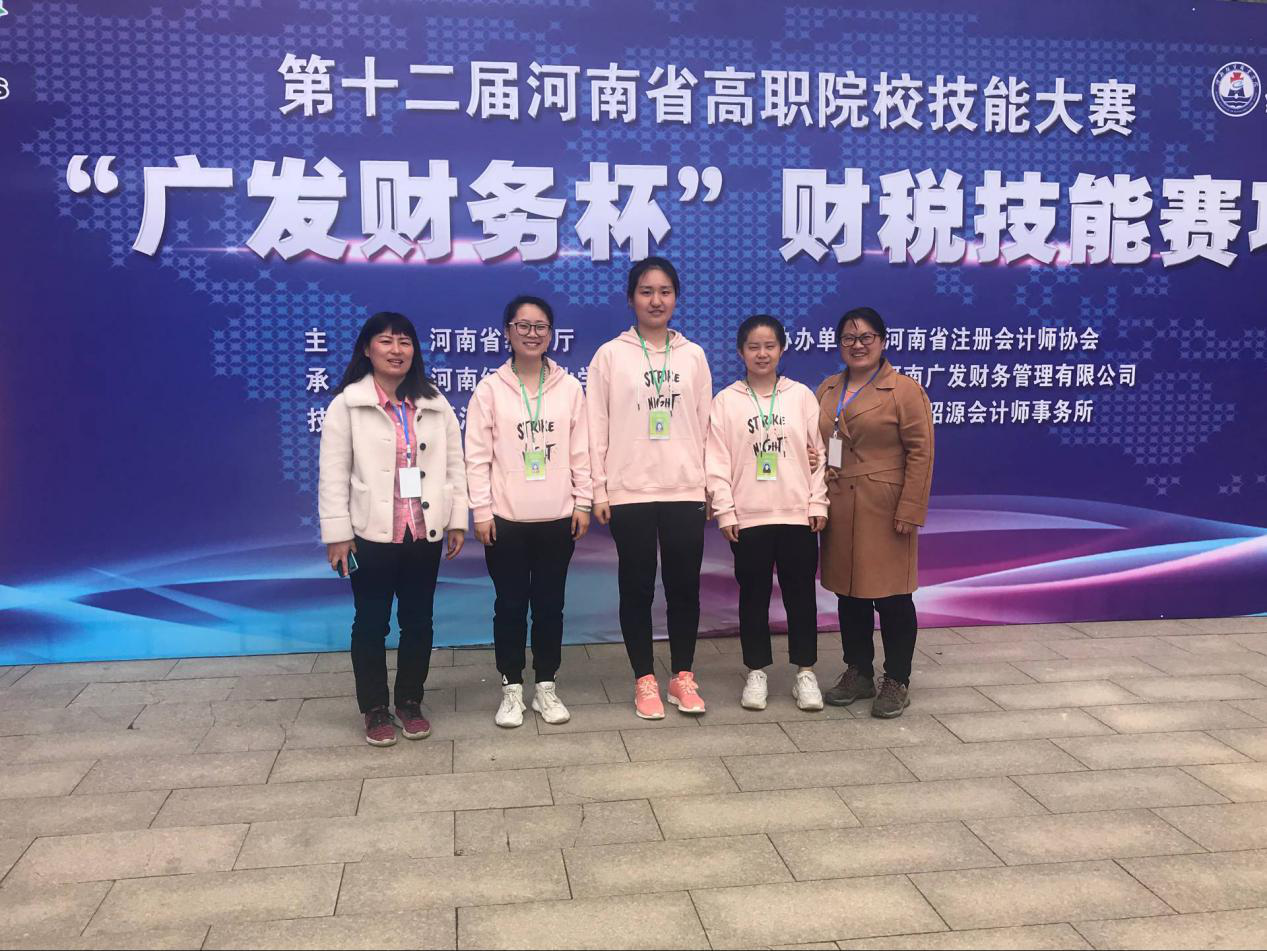 2019年4月13日,在河南经贸职业学院,举办了第十二届河南省高职院校技能大赛“财税技能”特色赛项,由邵丹、白晓鸽老师带领会计1706的冯晓梅、会计1707的郭晓雨、会计1701的郜杰三位同学参加了此次比赛。
