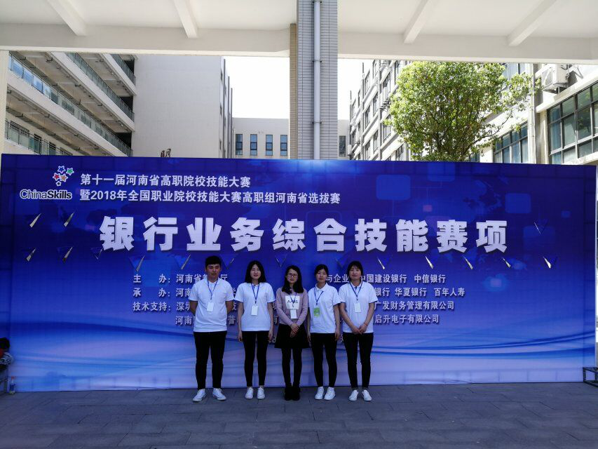 4月8号上午,河南省教育厅主办,河南经贸职业学院承办,深圳智盛信息技术股份有限公司支持的河南省高职院校银行业务综合技能大赛胜利召开。本次比赛共有22支高职院校队伍参加。我院张召哲、凌端平老师带队,会计学院学生吴月红、刘晓芳、王子玉和李淡肖四位同学组队参加了本次比赛,并取得了二等奖的优异成绩。
