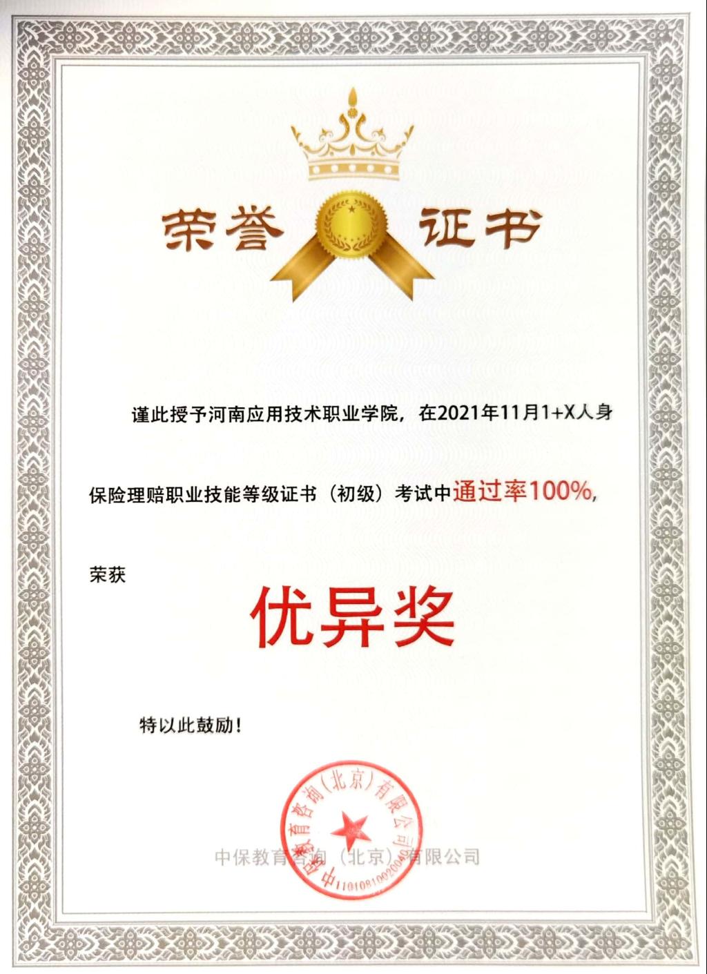 米乐mile官网作为河南省“1+X”人身保险理赔职业技能等级证书试点院校,米乐mile官方网站全体教师不仅利用课上时间开展培训,而且还利用课下及周末的时间激进型线上线下辅导,多次组织金融服务与管理专业学生进行模式考试,通过3个月师生的共同努力,最终在11月13日上午的初级考试中取得获证率100%的好成绩,并荣获优异奖。同时,米乐mile官方网站赵静老师、刘丹花老师获得“1+X”人身保险理赔职业技能等级证书的优秀辅导教师。