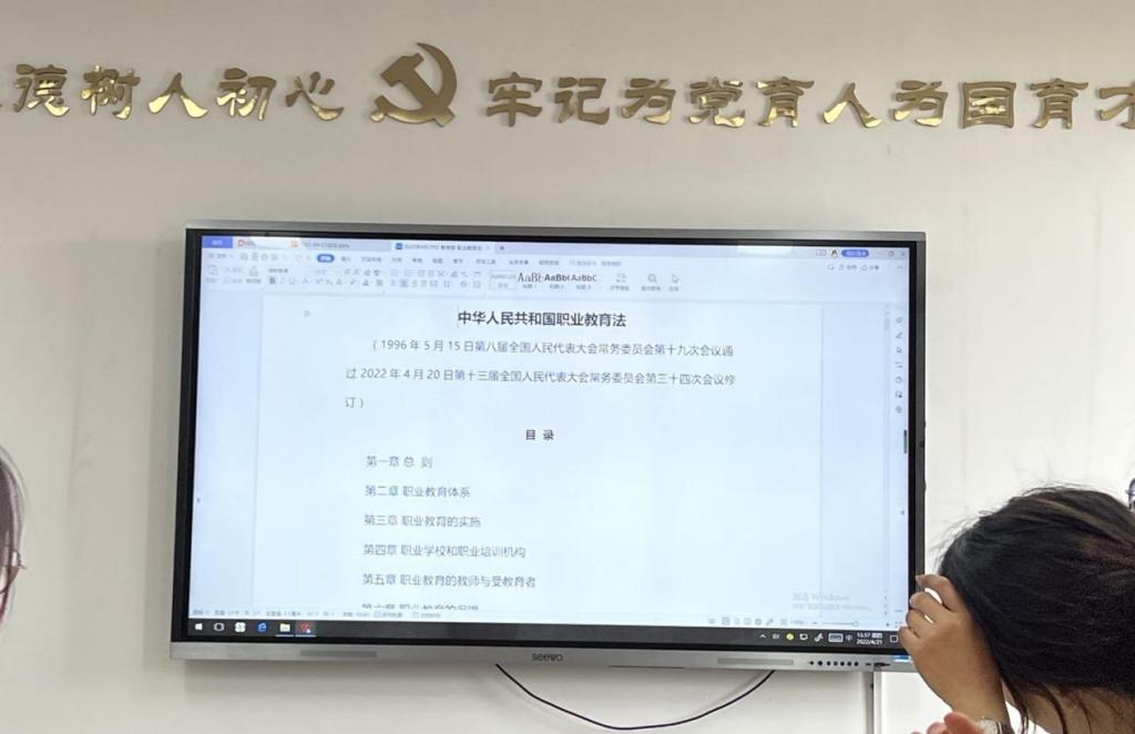 为提升学院全体教职工职业教育法治素养,推动学校职业教育高质量发展,2022年4月21日下午,米乐mile官方网站组织全体教职工学习《中华人民共和国职业教育法》,会议由教学办主任柴芳芳老师主持。