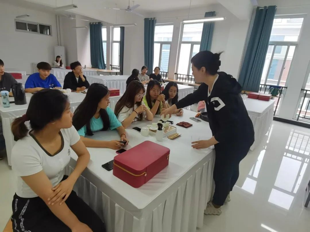 实践教学是技术技能型人才培养的重要环节,也是作为辅助课堂教学的有效教学形式。为进一步推动中华优秀传统文化与专业课融合,推进实践课程教学模式改革创新。5月30日,米乐mile官方网站特邀开封市语哲茶文化博物馆馆长刘青女士为我院2021级酒店管理专业学生开展了主题为《茶文化与茶艺基础》实践课程。