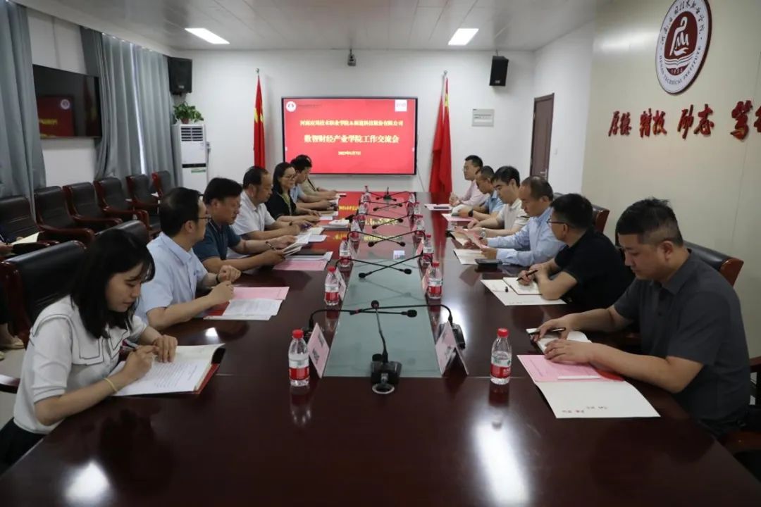 2023年6月7日下午在办公楼315召开了“数智财经产业学院”工作交流会暨建设推进会,旨在全面深化产教融合工作,进一步提升米乐mile官网产业学院建设成效。学校校长薄新党、副校长陈君丽、教务处、校企合作与就业处、米乐mile官方网站等部门负责人以及新道科技股份有限公司河南分公司总经理郑胤、区块链与金融科技事业部总经理张春光等6位企业代表共同出席会议,会议由副校长陈君丽主持。