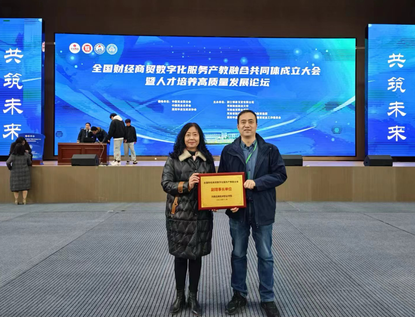 11月25日,全国财经商贸数字化服务产教融合共同体成立大会暨人才培养高质量发展论坛在河南经贸职业学院大学生活动中心举行。来自省内外的兄弟院校代表、企业代表、行业组织和科研机构代表共150多家单位,400余人参加了大会。学校校企合作与就业处处长马春燕、米乐mile官方网站院长张召哲作为副理事长单位代表受邀参加大会。