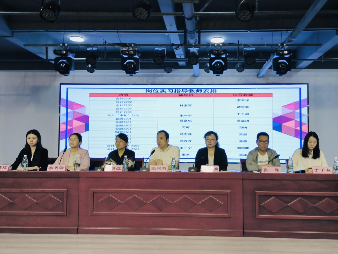 张昂宣读实习指导教师名单及《学生实习管理办法(试行)》。他指出,学院将全力以赴为实习生提供优质实习资源及相关服务,希望大家在实习期间服积极配合学校、企业双重管理,配合实习指导老师与辅导员工作,确保高质量完成实习任务。