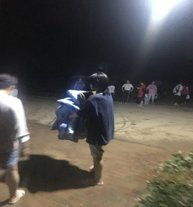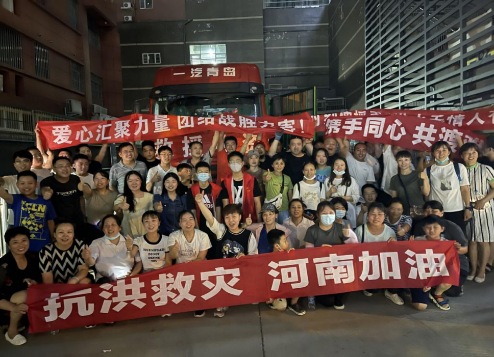 金融1902班靳坤朋和鲍凯,积极参与到七彩虹集团宏威公益组织中,帮助他们搬运上千箱送往新乡辉县、浚县、巩义的各类救援物资。