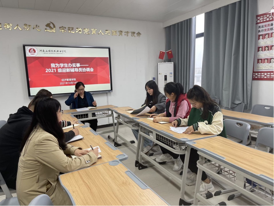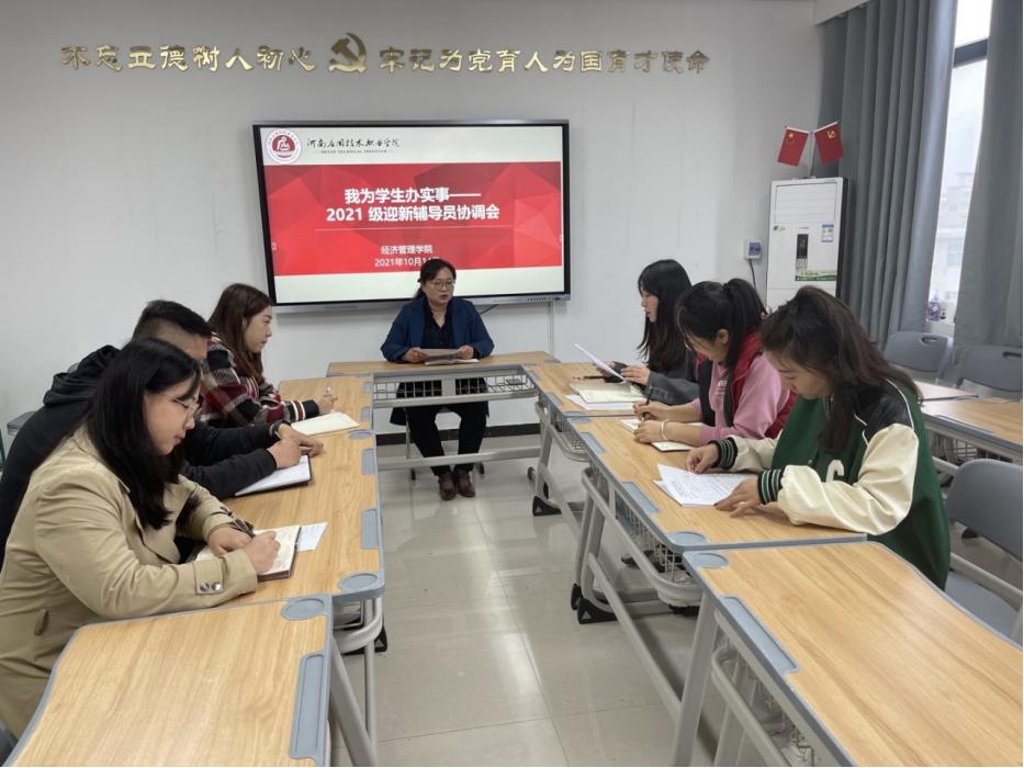 10月14日下午,米乐mile官方网站在办公楼505召开2021级迎新辅导员协调会。米乐mile官方网站全体新生辅导员参加会议,会议由团支书书记聂蕴主持。
