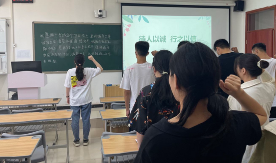会议最后,全体学生进行了诚信宣誓,表达了对诚信考试拒绝作弊的决心。