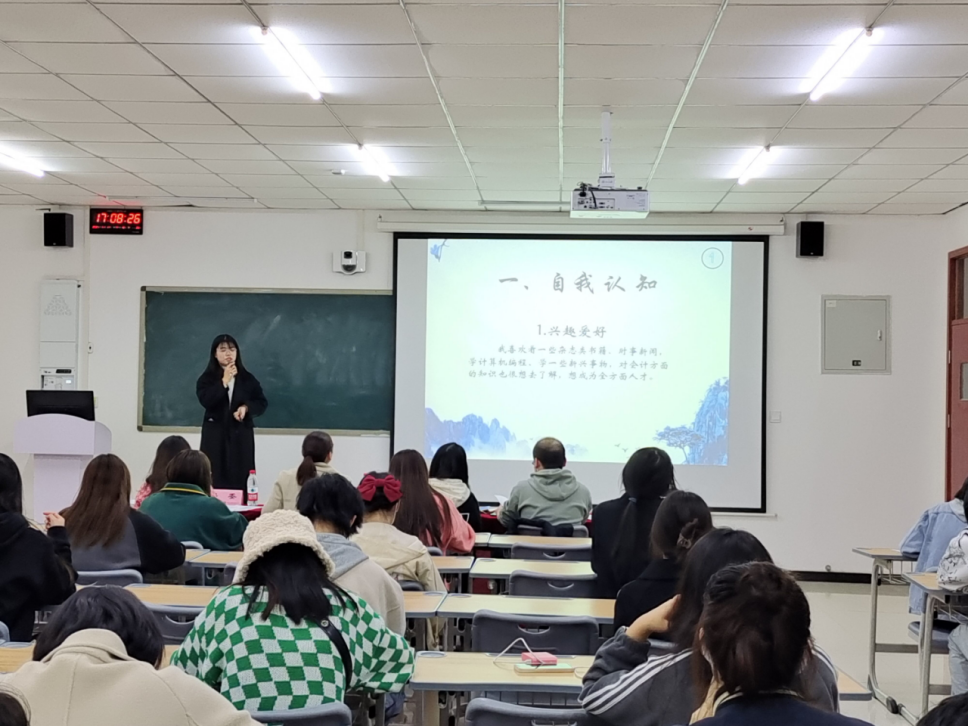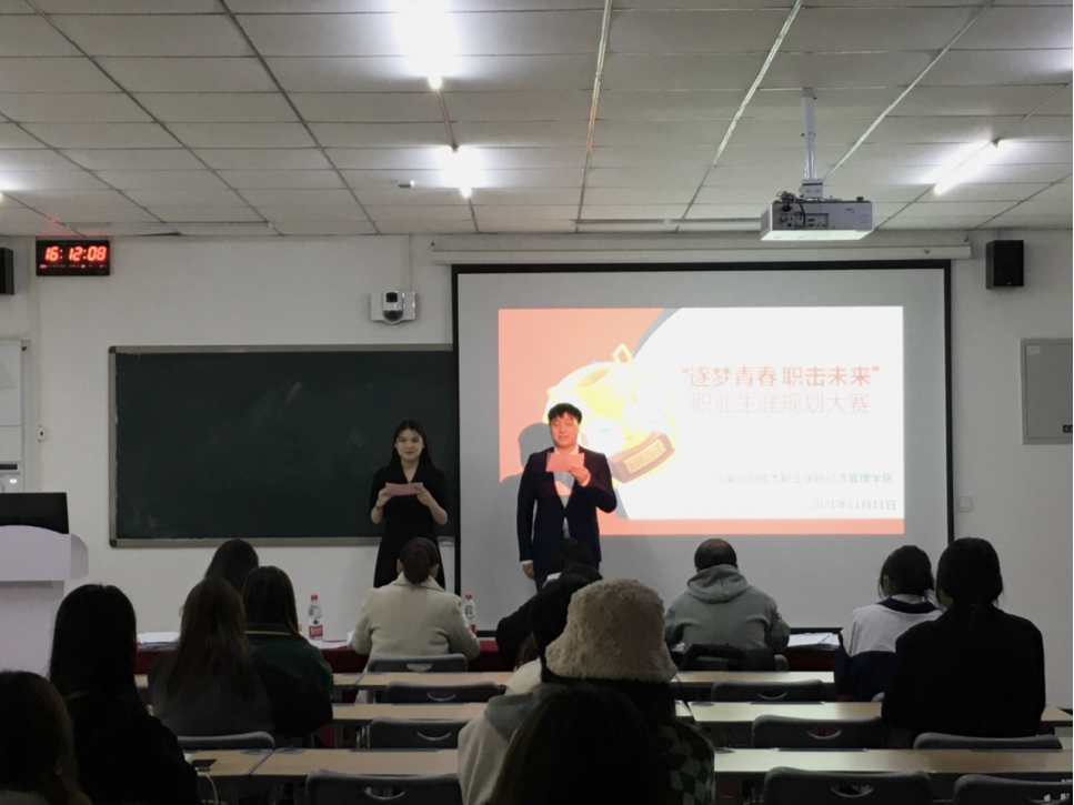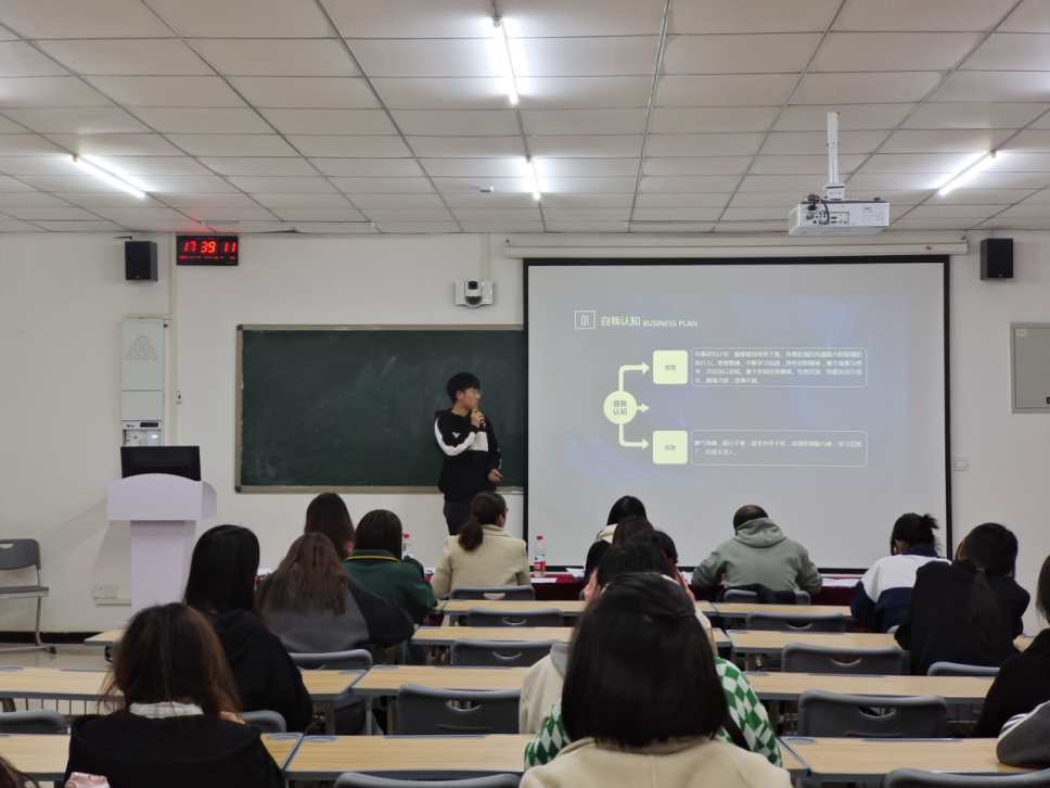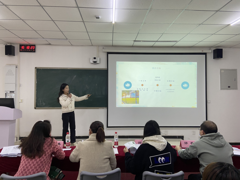 经过前期的作品遴选、修改打磨后,共12位选手站在比赛的现场同台竞技,以“逐梦青春 职击未来”为主题,对个人职业生涯规划进行现场汇报展示。选手们自信从容地将个人职业蓝图娓娓道来,从职业测评结果、SWOT分析、自我认知、职业定位、评估调整方案等角度多维度剖析。他们统筹专业优势、兴趣爱好和性格特点,客观认识外部环境,结合个人经历与实践经验确定了职业目标。选手的职业规划有注册会计师、投资专员、审计员、风控员等,根据岗位要求制定了阶段性计划,向理想职业不断努力,充分体现了“逐梦青春 职击未来”的活动理念。