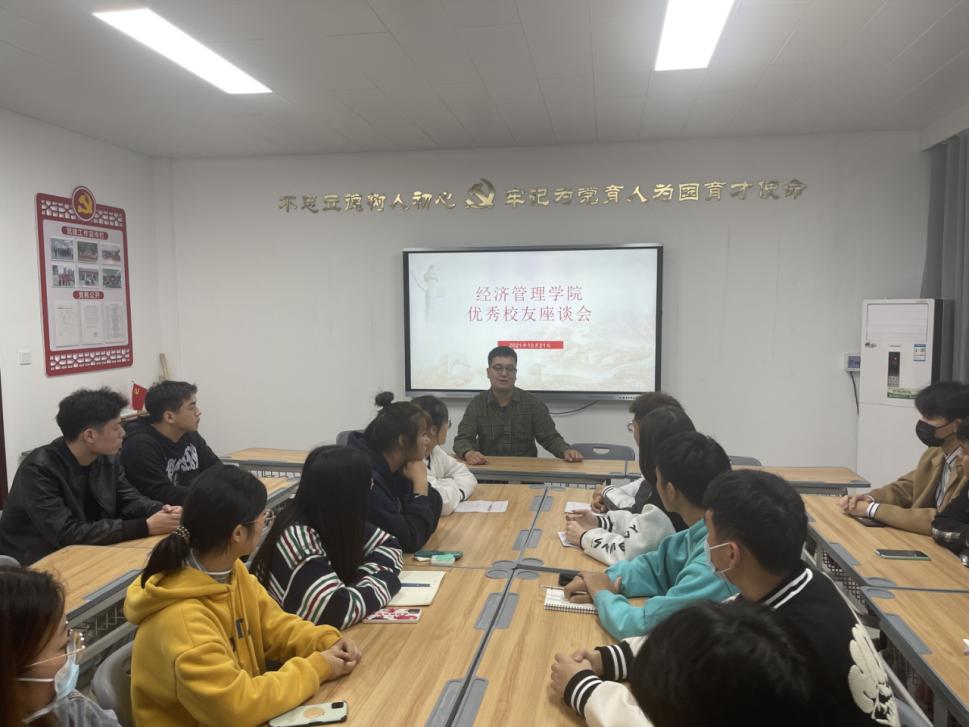 为全面提高米乐mile官方网站学生干部综合素质,进一步明辨“初心”,增强“使命”意识,2021年10月21日,经济与管理学院召开“优秀校友与学生干部面对面”交流分享暨座谈会,特邀嘉宾2011级优秀校友陈越,与学生干部进行热烈的互动和深入地交流。米乐mile官方网站团总支书记聂蕴老师及部分学生会干部参会。