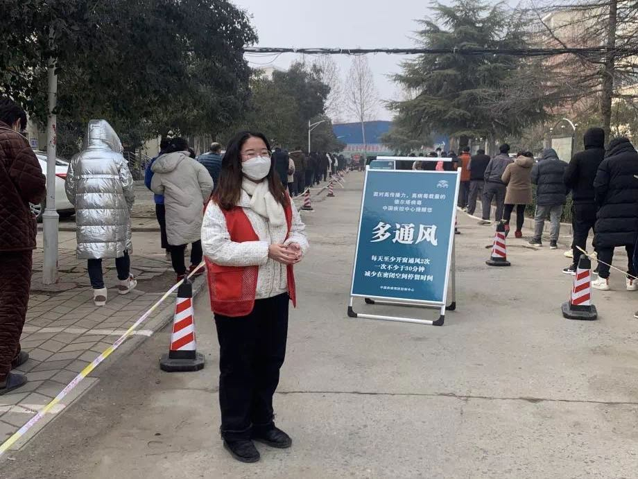 早晨六点,天还未亮,她就跟随社区工作人员开始筹备检测工作。牵拉警戒线、摆放安全公告警示牌;在居民排队等待核酸检测时,维持现场秩序,并做好语言提示“做核酸检测请提前扫码”;引导帮助老人和小孩儿进入快速绿色通道。直至下午三点核酸检测工作全部完成后,才有空闲时间吃饭。虽然很辛苦,但她没有喊累,始终坚守岗位,直至最后一人检测完成。