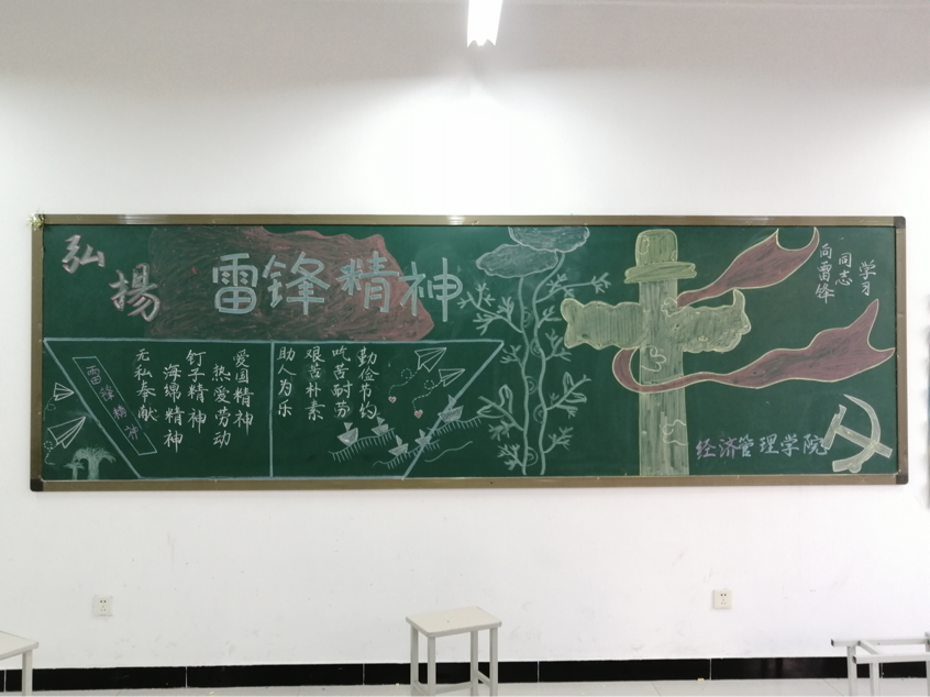 为教育引导广大学生弘扬雷锋精神,让青年学生的精神文明与时俱进,弘扬中华传统美德,强化公民道德意识,促进校园精神文明建设。根据校团委的文件要求,米乐mile官方网站团总支积极响应校团委号召,2022年3月5日利用课余时间在东校区教学楼绘制了以“学习雷锋精神”为主题的黑板报。