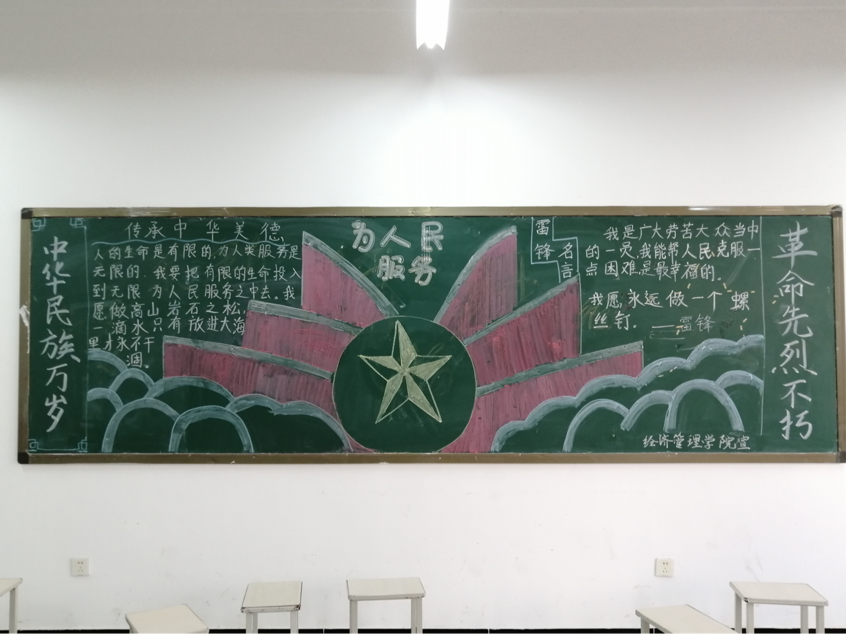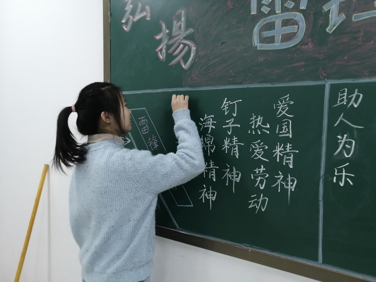 此次活动学生充分利用黑板报这一宣传阵地,对雷锋的生平事迹进行了介绍,也对新时代背景下的雷锋精神和内涵做出了自己的解读,生动形象地把雷锋精神呈现在同学们面前,让同学们充分了解雷锋、学习雷锋,传承雷锋精神。