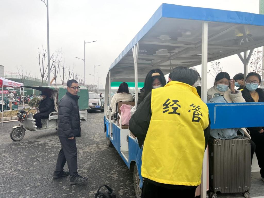 此外,张昂老师开着摆渡车、带队志愿者往返“校园南门口—铁炉站C站口”,帮助返校同学运送行李。