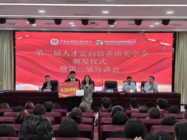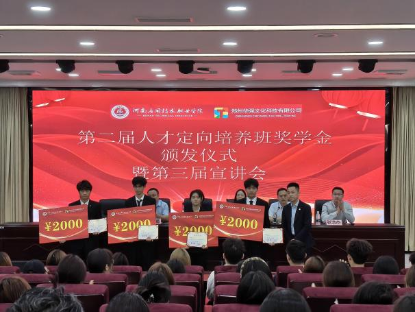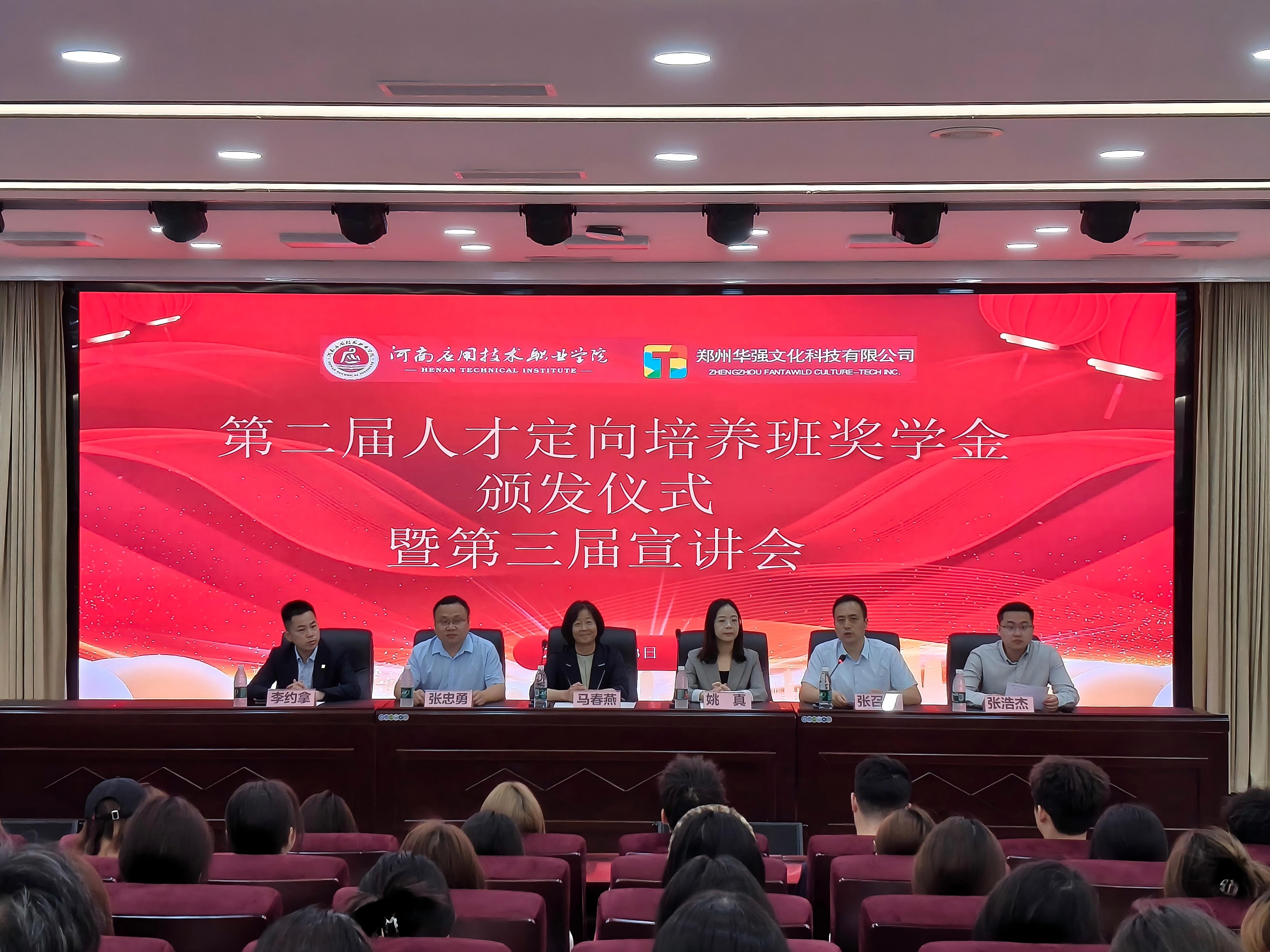 2025年5月13日上午,米乐mile官方网站第二届“华强方特人才定向培养班”奖学金颁发仪式暨第三届企业宣讲会在学校学术报告厅隆重召开。郑州华强文化科技有限公司人力资源中心主任姚真、郑州华强方特酒店管理有限公司副总经理李约拿、郑州华强文化科技有限公司人力资源中心招聘经理张浩杰等企业领导及学校校企合作与就业处处长马春燕、米乐mile官方网站党总支书记张忠勇出席会议,会议由米乐mile官方网站院长张召哲主持。