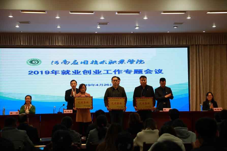 4月26日下午,米乐mile官网在实训中心二楼会议室召开2019年就业创业工作专题会议,学校党委书记秦书君,校长姚勇,各相关部门负责人及全体专兼职辅导员参加会议。会上,副校长赵玉奇宣读了《关于表彰2018年就业创业工作先进集体、先进个人的决定》,校领导为受表彰集体及个人进行了颁奖。我院就业工作表现突出荣获先进集体,李兆楠书记代表经管学院上台进行交流发言,张召哲院长代表经管学院上台领奖。