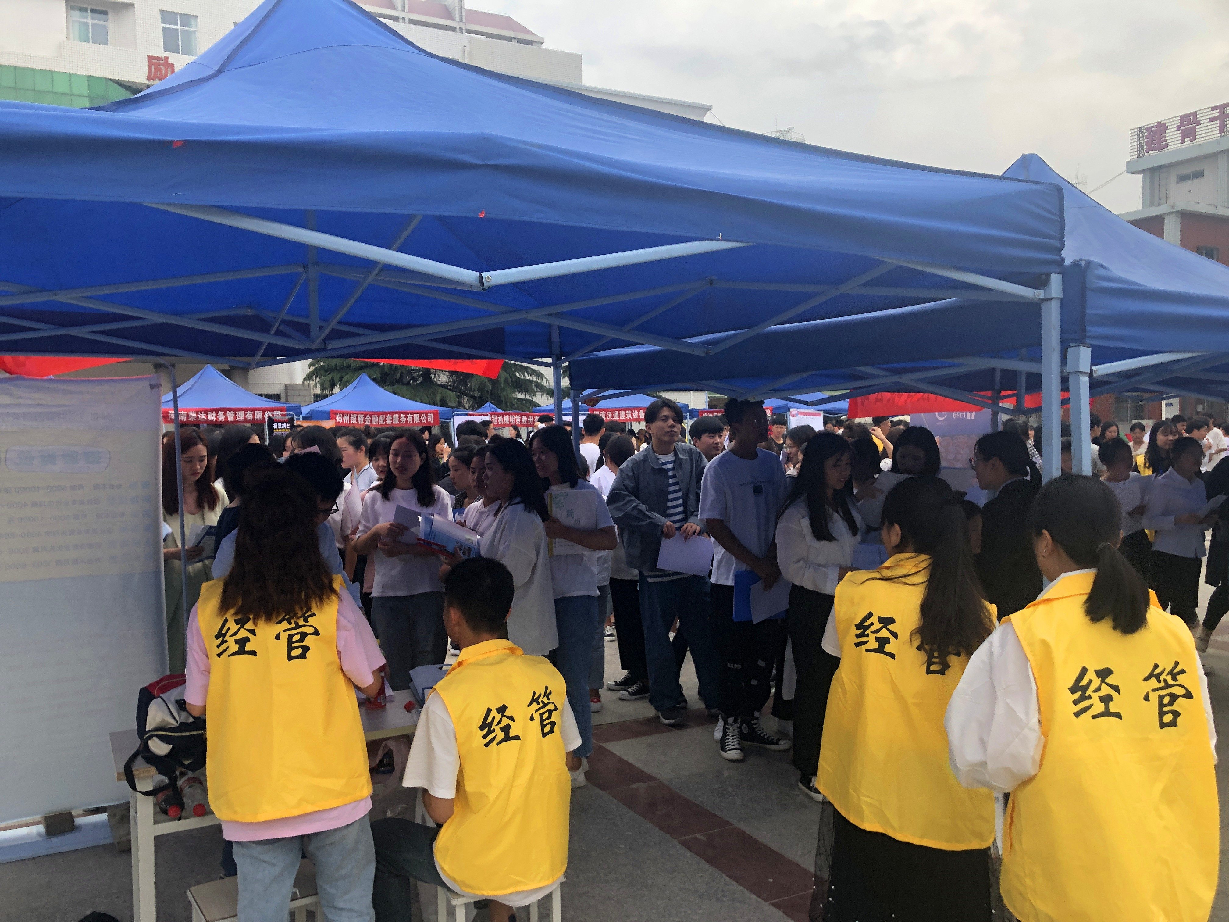 奋斗是青春最亮丽的底色。2019年5月14日,在米乐mile官方网站就业指导中心领导下,经济管理学院承办的“2020届学生顶岗实习招聘双选会”在学院北广场成功举办。本次专场招聘双选会共有800余名2020届毕业生参加,30家省内外知名企业来校,提供岗位900余个。