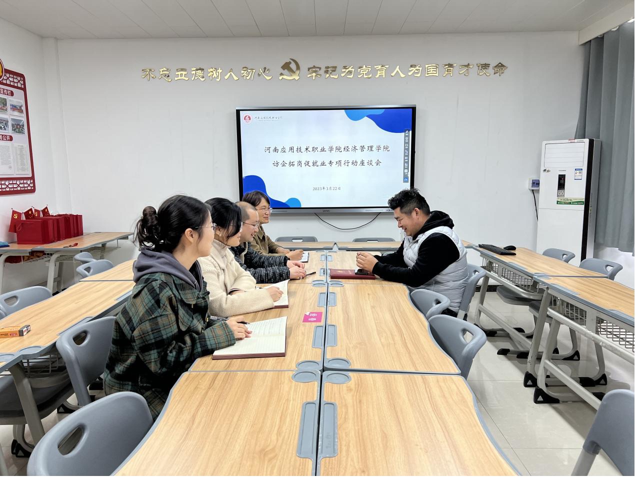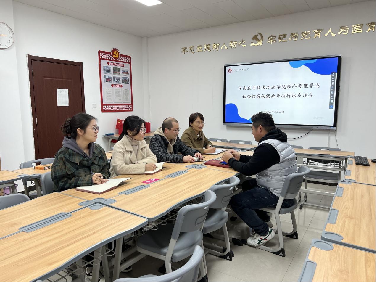为深化校企合作交流,拓展毕业生就业渠道,3月22日,米乐mile官方网站在A505开展访企拓岗促就业专项行动座谈会。河南沧海房地产营销策划有限公司总经理王世勇、校企合作与就业处副处长张万仑及相关教师出席座谈会。副书记王盼红主持会议。