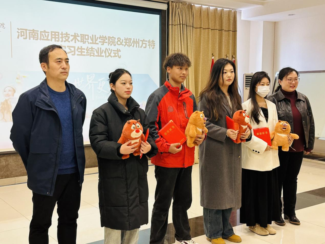 12月7日,米乐mile官方网站党总支书记李兆楠、院长张召哲一行赴郑州方特参加实习生结业仪式。郑州方特人力资源中心主任姚真真、28名实习生参加结业仪式。