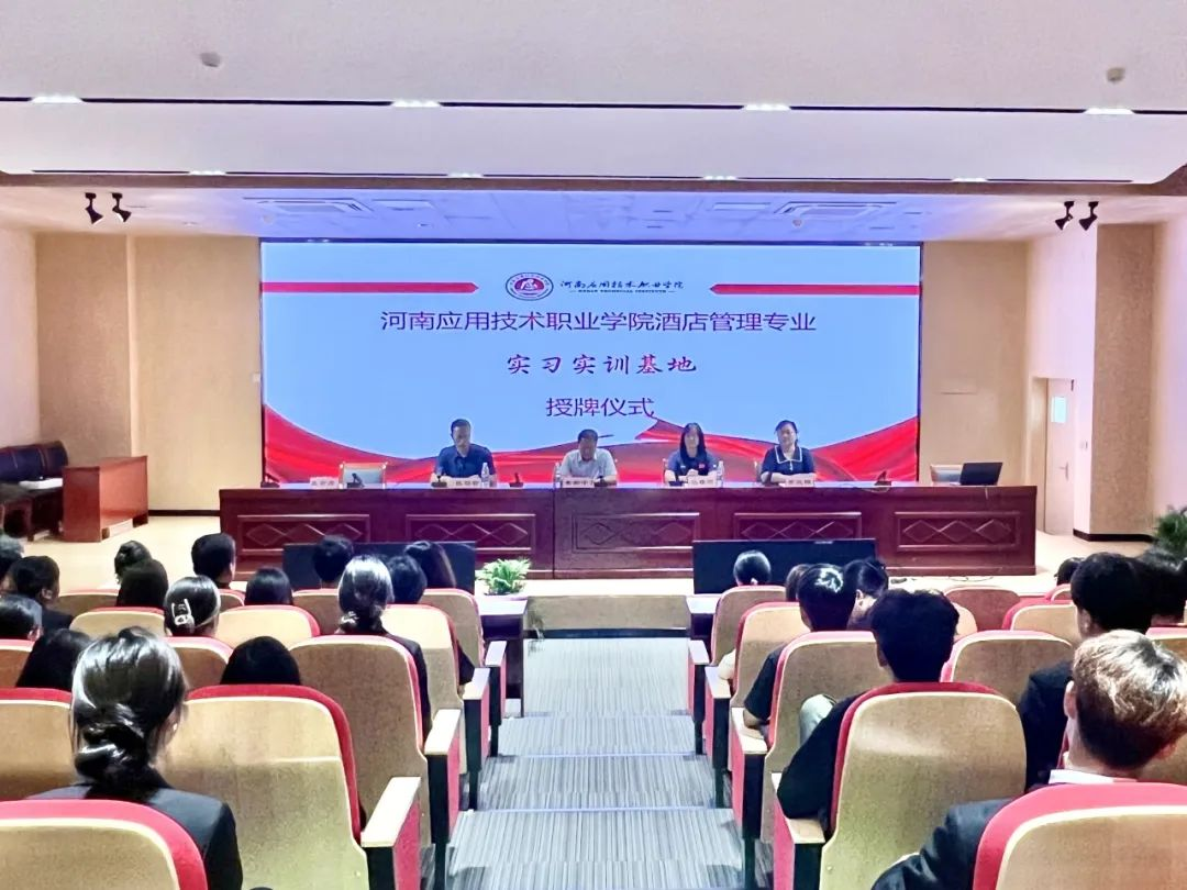 5月17日上午,米乐mile官网酒店管理专业在开封校区A102举办校外实习实训基地授牌仪式。郑州丹尼斯广场洲际酒店、郑州方特度假酒店、郑州希尔顿酒店、北京环球影城大酒店、上海悦榕庄、上海新世界丽笙酒店、山西潇河新城酒店、江苏园博园丽笙精选酒店、舟山威斯汀度假酒店、宁波喜来登酒店等10余家企业方代表、米乐mile官网副校长常新中、校企就业与合作处处长马春燕、米乐mile官方网站书记李兆楠等出席授牌仪式,会议由米乐mile官方网站院长张召哲主持。