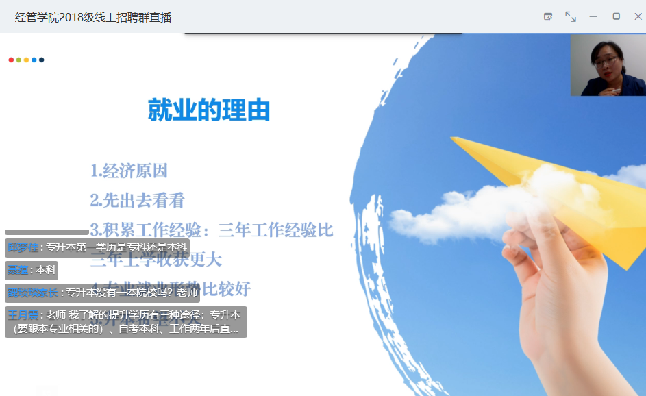 面对2020年这个特殊的毕业季和就业季,米乐mile官方网站就业服务“不打烊”。学院开展“战胜疫情‘职’击未来”就业指导网络直播讲座,为即将毕业的2020届和即将预就业的2021届经管学院毕业生和学生家长们进行了一场全面、深入的就业指导。