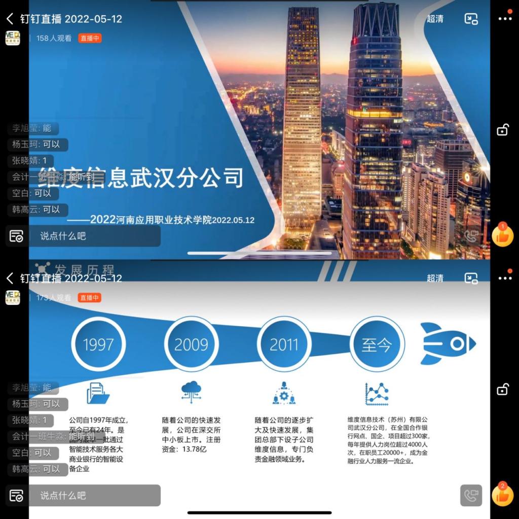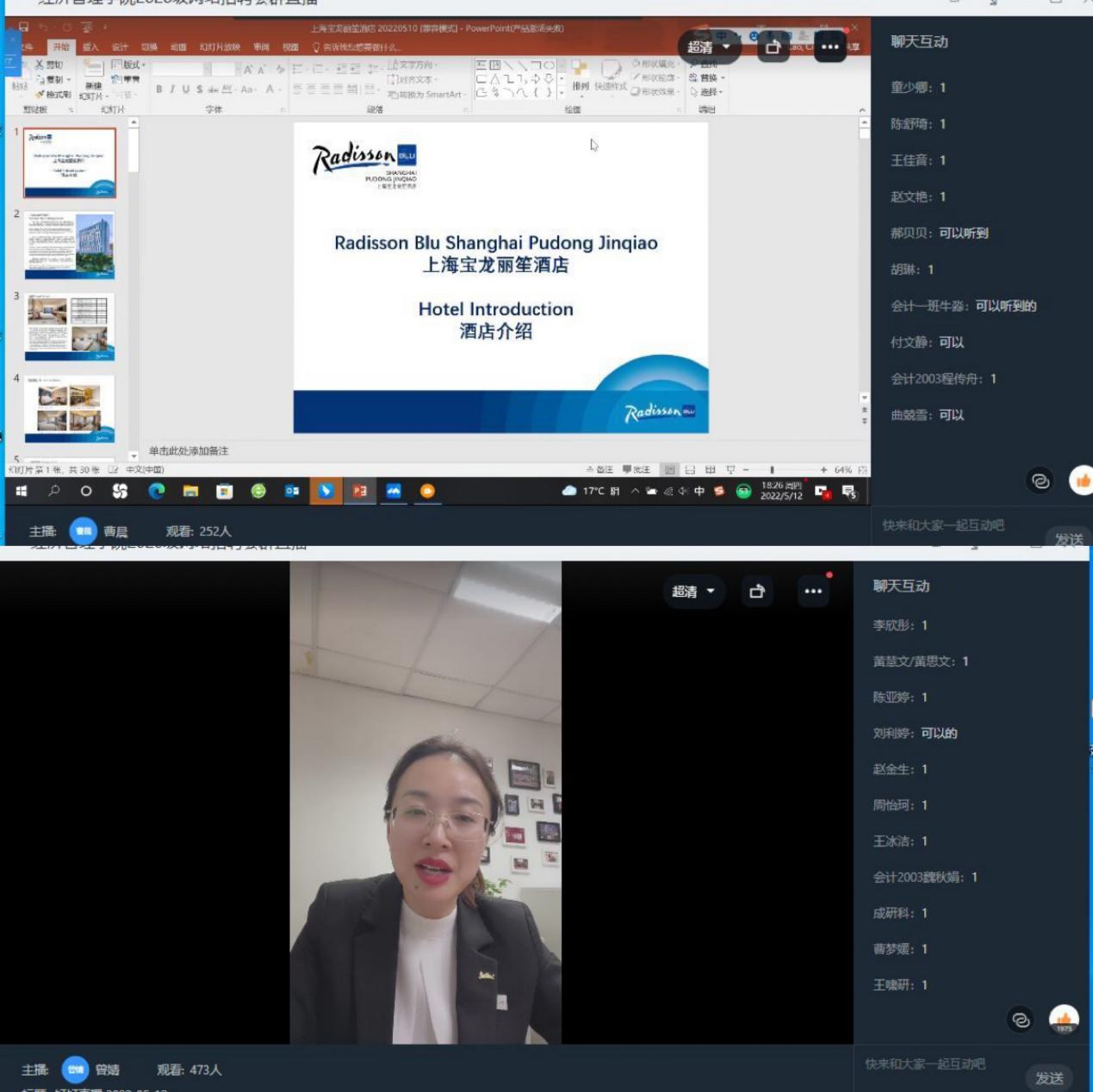 为推进2023届毕业生顺利就业,继续实现“稳就业”目标,2022年5月12日晚,以钉钉会议形式,米乐mile官方网站举办“职为你来”空中宣讲会。学工主任张昂“牵桥搭线”主持会议,上海新世界丽笙大酒店、郑州希尔顿酒店、纬度信息武汉分公司等6家企业与同学们“隔空”相聚。