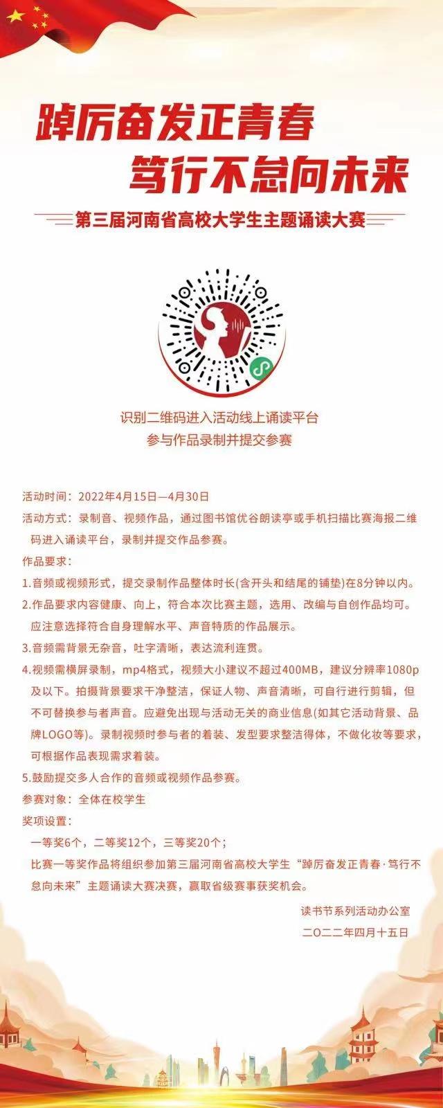 踔厉奋发正青春 笃行不怠向未来——第三届河南省高校大学生主题诵读大赛通知