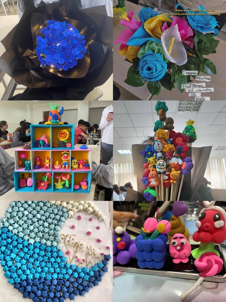 最后,以宿舍为单位,同学们依次解说自己的创作,使现场的学生进一步了解作品所蕴含的独特构思、寓意。本次活动为同学们提供了一个展示创意才华的舞台,体现了同学们的艺术创造力,是班级内涵建设的一道亮丽的风景线,进一步提高了班级凝聚力,激发了当代大学生的创造力,让学生在实践中体验劳动精神、感悟劳动之美。