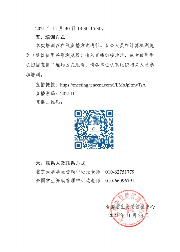 关于开展2021年全国学生资助管理中心第四期线上培训的函