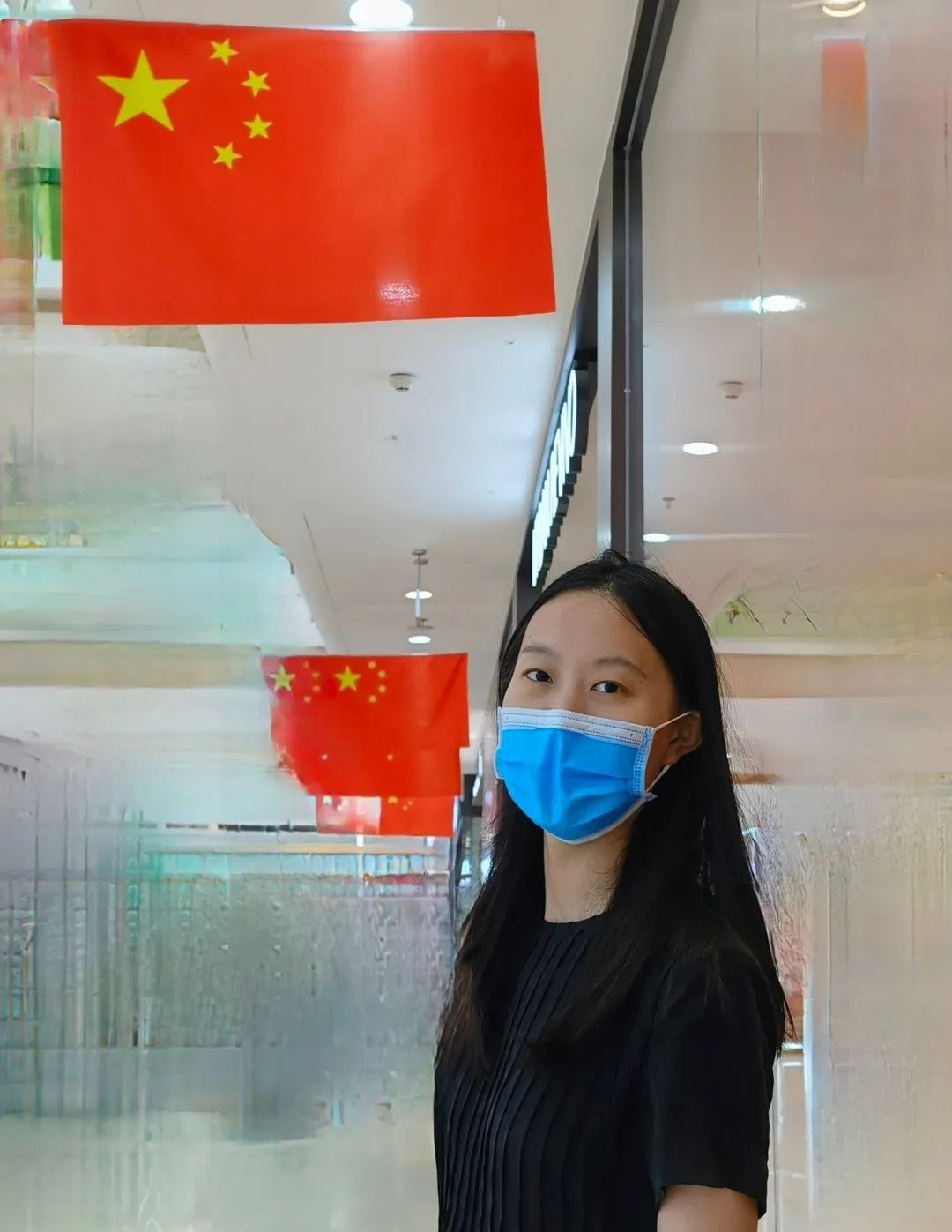 与国旗合影