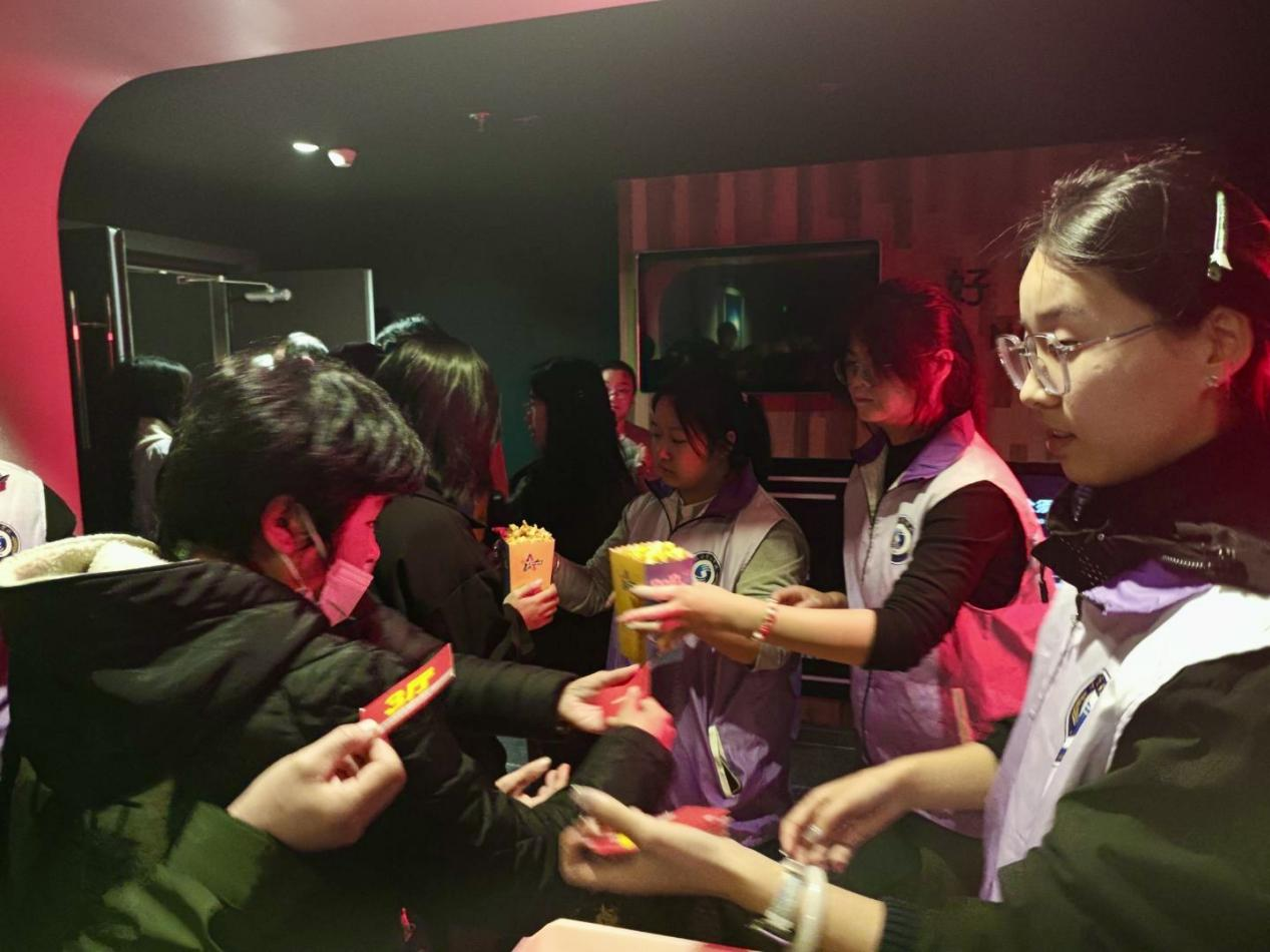 活动前,党支部成员带着慰问水果提前到达现场并做好分发工作。米乐mile官方网站党总支书记王倩与活动负责人进行亲切交流,沟通现场情况。在影院门口,支部志愿者为听障人士分发电影券、爆米花并有序组织入场。电影开始之后,支部成员与听障人士一起观看影片《震耳欲聋》,共同感受无声世界的抗争与坚守。聋人可以发声,正义震耳欲聋,通过无声陪伴共同观影,支部成员进一步深刻体验听障群体的社会困境、内在力量以及对平等权利的强烈呼唤,表示今后要积极参与无障碍设施完善、信息无障碍推广等公益活动,让“无声”被看见、被重视,共建尊重平等包容的社会氛围。
