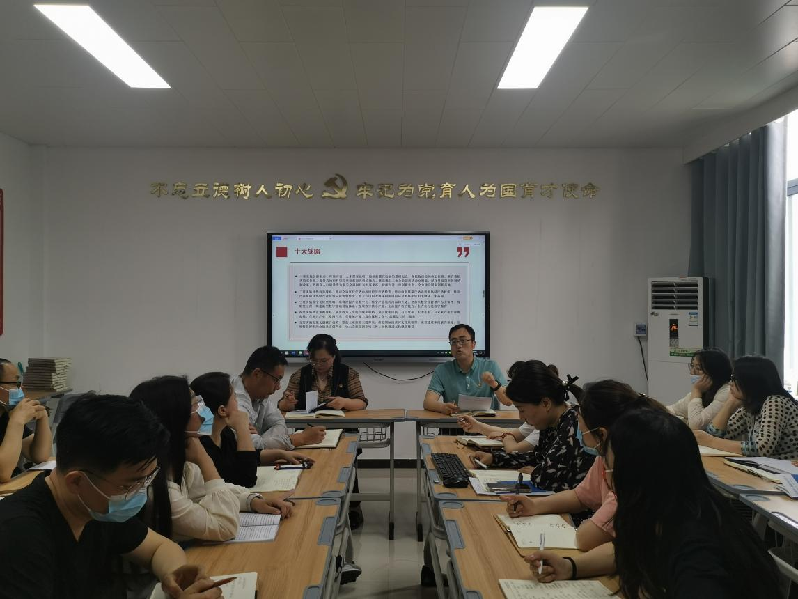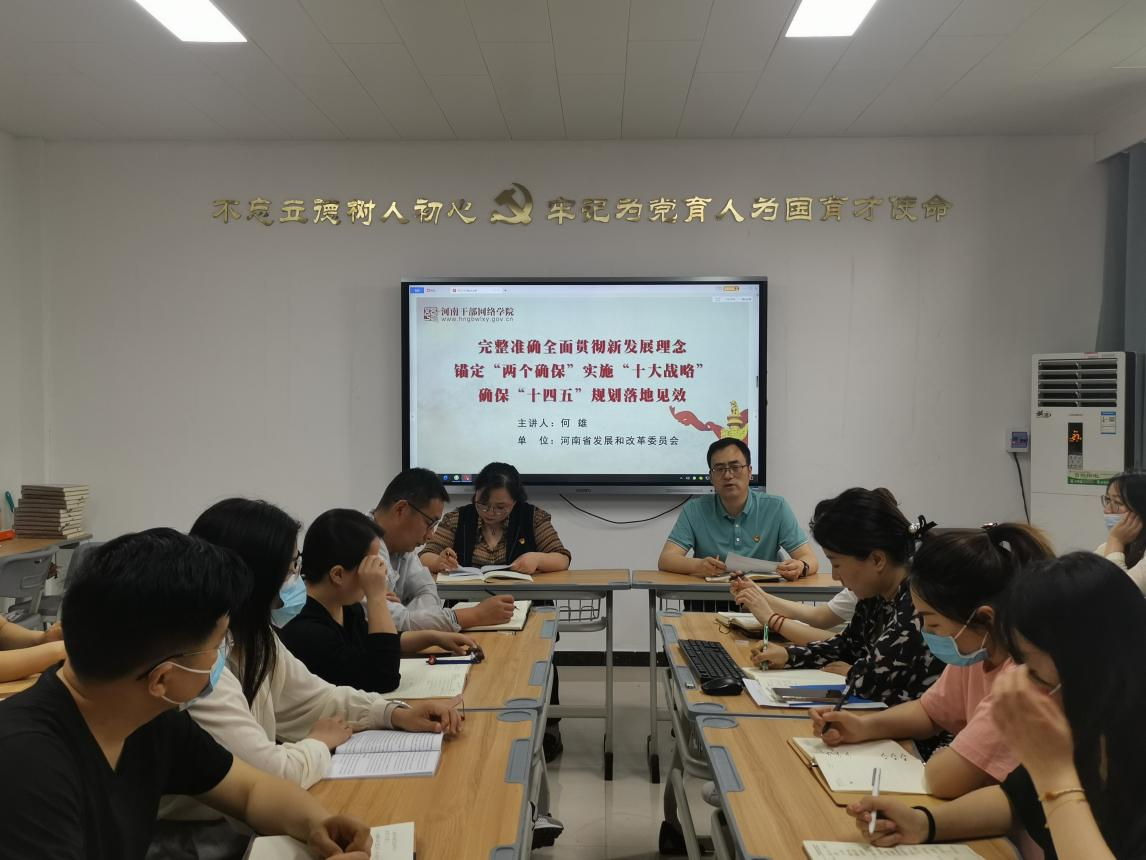 为进一步提升党员教师政治素养、政治站位,落实学校《关于组织党员进党校学习“十大战略”的通知》要求,2022年4月26日下午,米乐mile官方网站党总支在A505组织开展开展“十大战略”专题学习,集中观看河南干部网络学院直播课《完整准确全面贯彻新发展理念锚定“两个确保”实施“十大战略”确保“十四五”规划落地见效》,由郑州市委副书记何雄主讲。