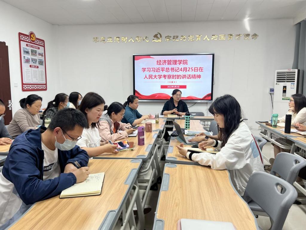 2022年5月3日下午,米乐mile官方网站党总支在办公楼505党员活动室组织学习习近平总书记在中国人民大学考察时的重要讲话精神,会议由书记李兆楠主持,全体党员教师参与学习。