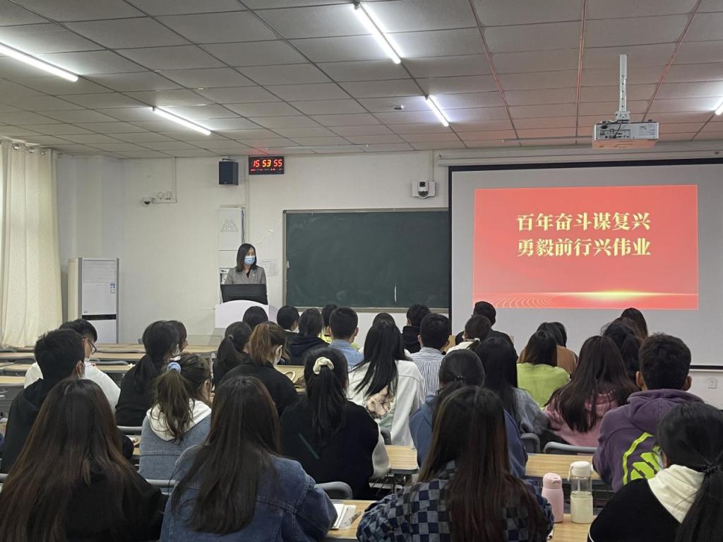 2022年4月28日下午,米乐mile官方网站党委委员、纪委书记陈雅莉老师在双创教学楼104为米乐mile官方网站学生讲授了一堂题为“百年奋斗谋复兴,勇毅前行兴伟业”的形势与政策课。