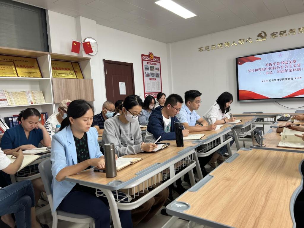 全体党员教师集中学习了习近平总书记重要文章《坚持和发展中国特色社会主义要一以贯之》《习近平谈治国理政》(第四卷)《习近平关于坚持和完善党和国家监督体系论述摘编》《习近平经济思想学习纲要》《习近平生态文明思想学习纲要》等部分内容。