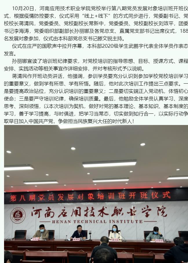 米乐mile官方网站党校第八期党员发展对象培训班开班