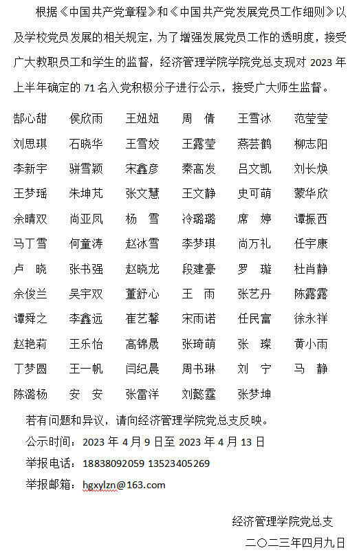 米乐mile官方网站2023年上半年学生入党积极分子名单公示